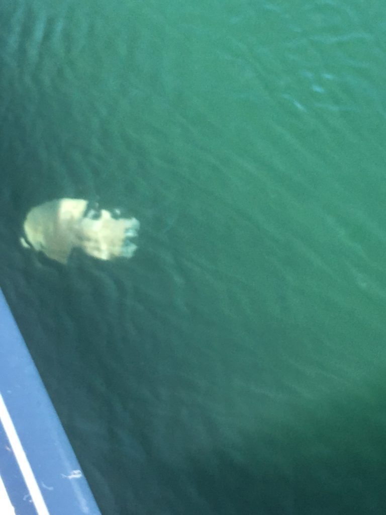 Vemos duas medusas enormes que devem ter pelo menos 40cm de diâmetro. Acho que se os visse a nadar, teria tido um ataque cardíaco