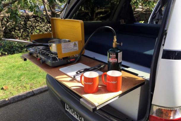 Mas quando chove também se pode cozinhar, como no Jucy’s, na parte de trás do carro