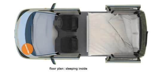 Nota: se você viajar com uma criança, aconselho a Beta a ter um 3º lugar + comprar um pequeno colchão de ar para colocar nos bancos da frente, mas ei, tem que ser pequeno.