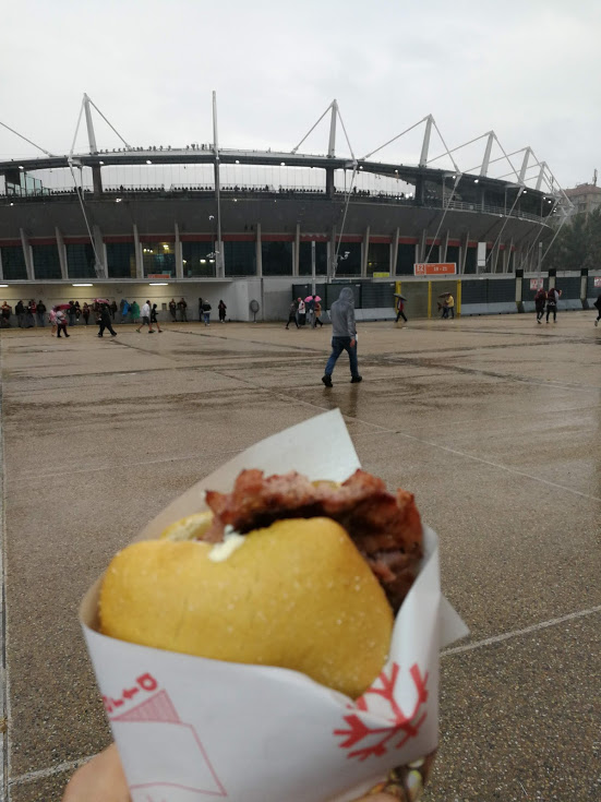 Cheira-me logo a comida grelhada, há churrascos por todo o lado! Aqui é popular, futebol de família, você vem para apoiar a sua equipe por paixão. Não vêm dezenas de treinadores de turismo só para ver o que brilha, como eu vi no Estádio Allianz