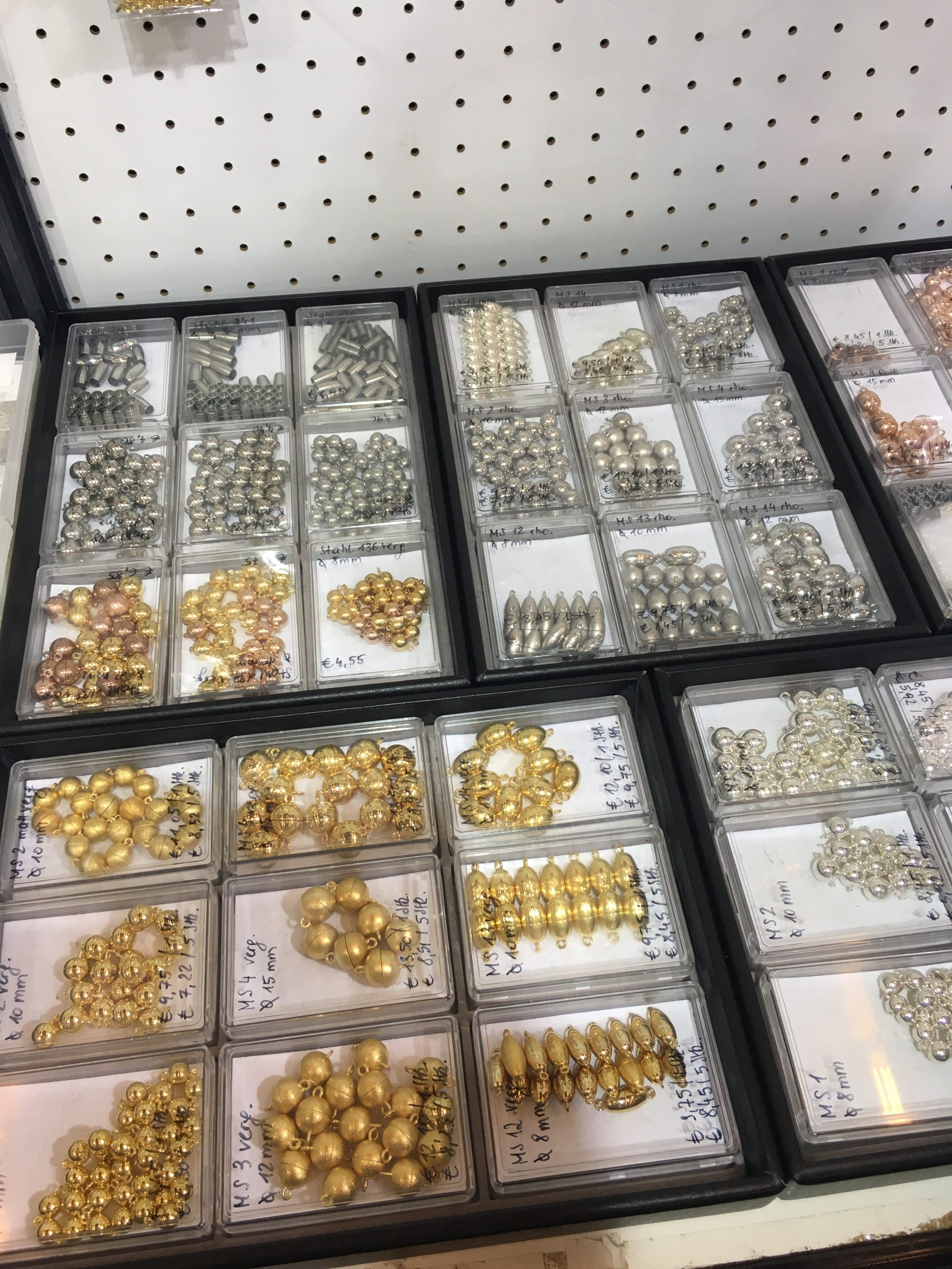 Este ano, a parte da matéria-prima é metade do tamanho. Vemos sobretudo pedras semi-preciosas, pérolas de todos os tamanhos ..