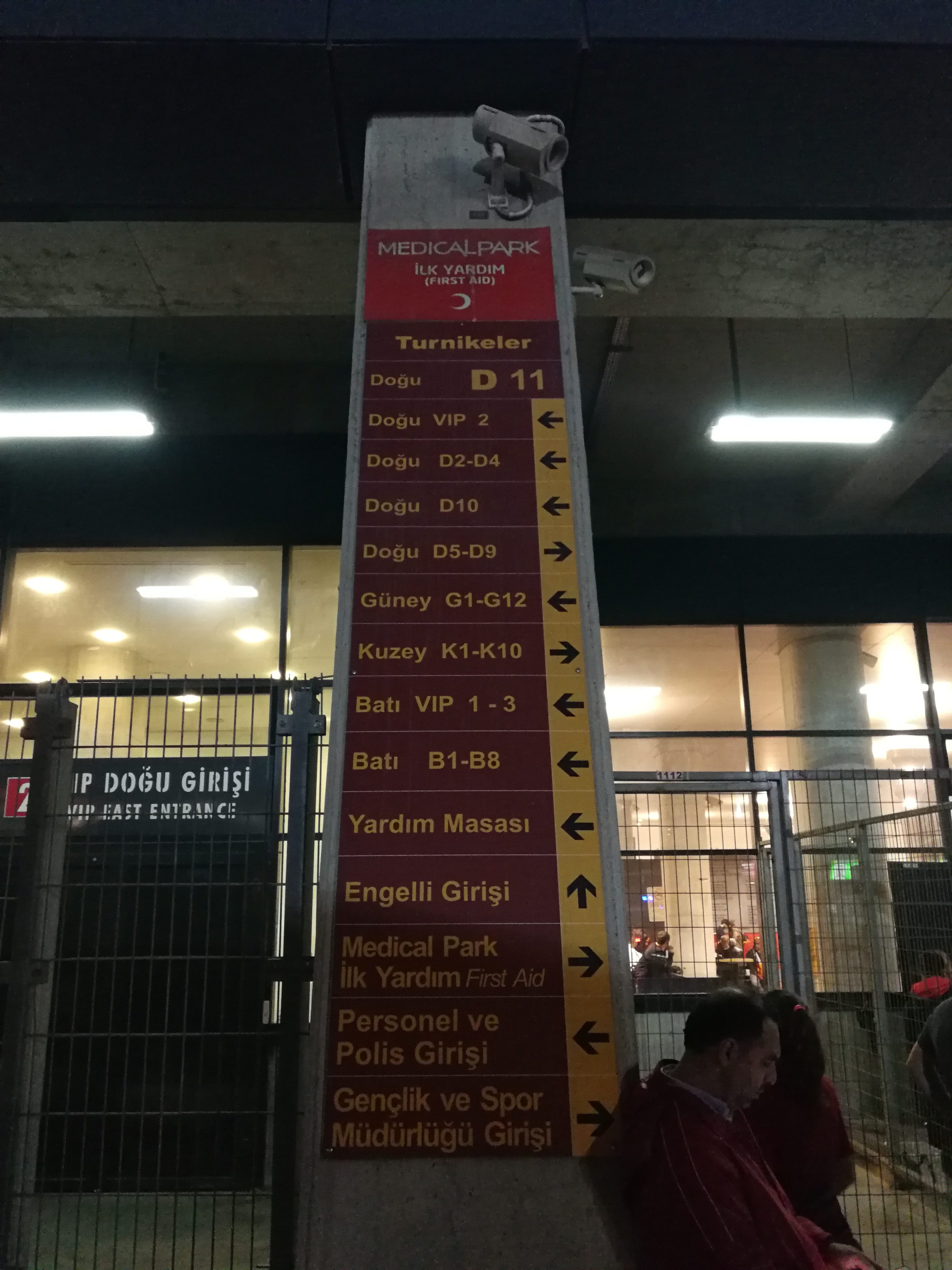 Estou a ter dificuldade em encontrar a porta certa para a minha tribuna principal, mas estou a chegar lá. Vai ter de digitalizar novamente o seu passeolig para entrar. Aconselho-o a anotar o número da sua bancada quando comprar o seu bilhete. Como o seu Passolig funciona como um bilhete, você não tem nenhuma informação visível sobre a sua localização