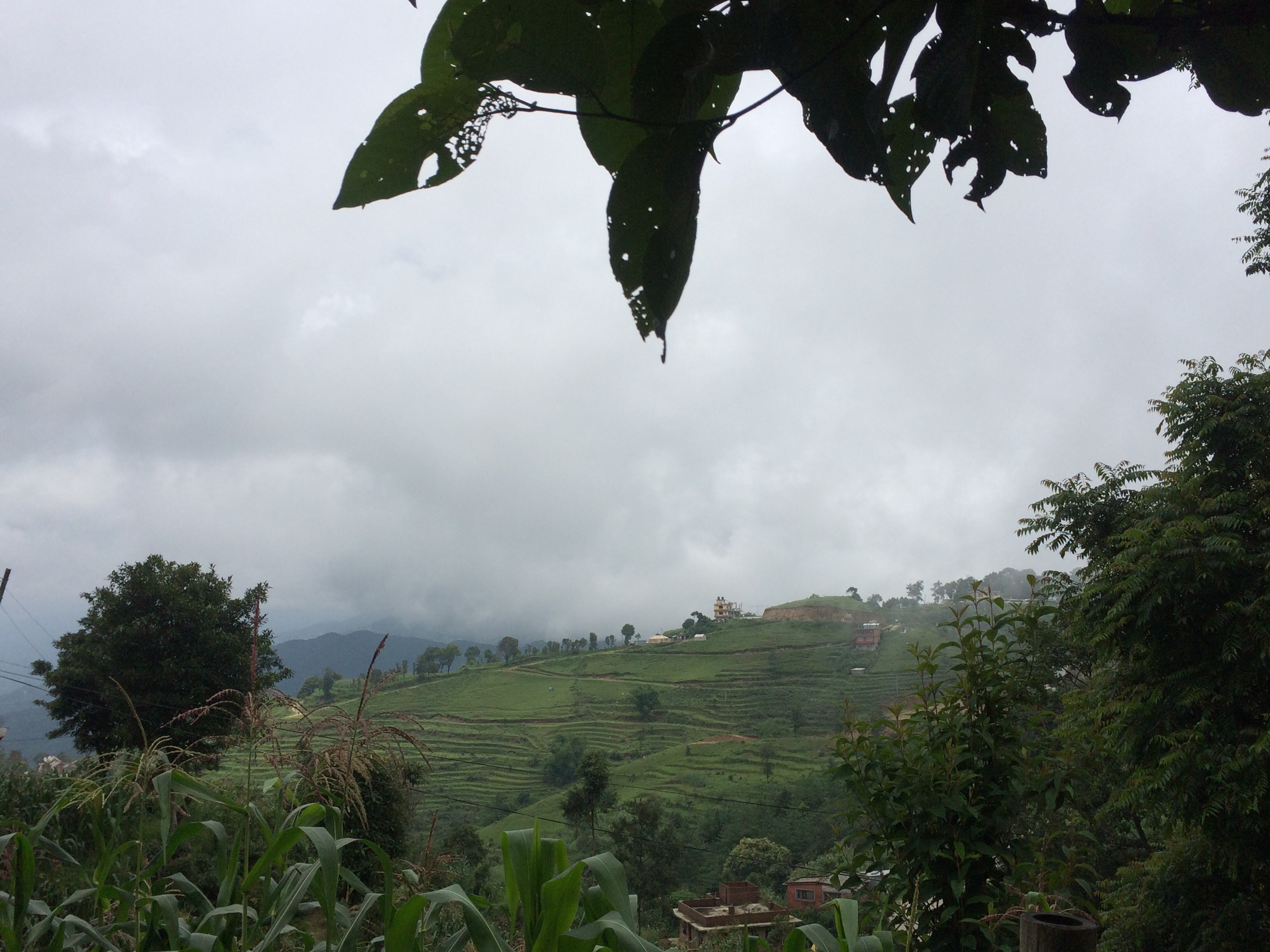 Estamos só a andar por aí. A vista é por vezes obscurecida pelo nevoeiro, ainda não vemos o Evereste e provavelmente não o veremos. Já fomos aconselhados a não vir aqui no meio da monção, mas como temos todo o tempo do mundo, vir aqui para respirar o ar fresco ainda é muito agradável