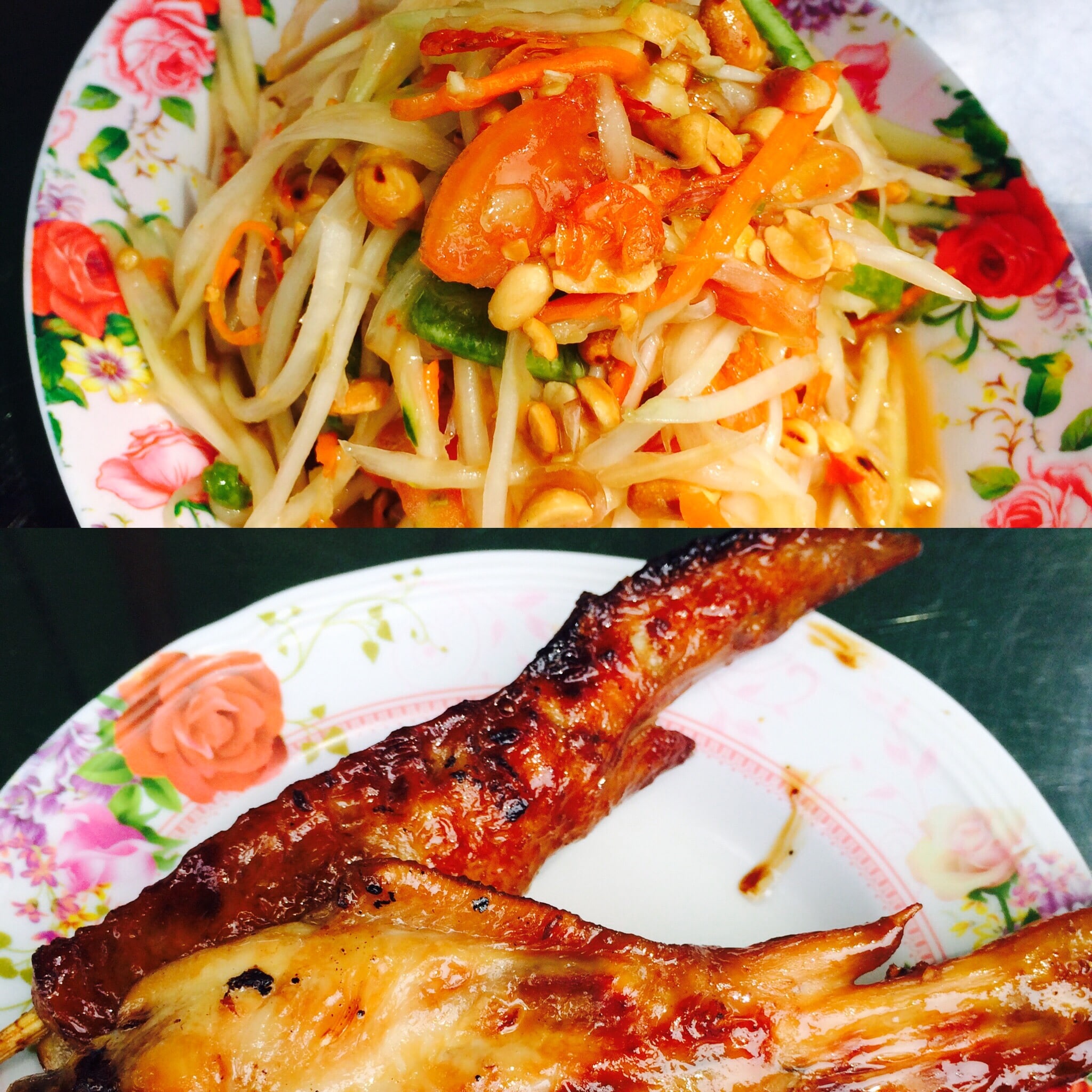 Perto da estação de metrô, você pode ver vendedores ambulantes com um tapete de bambu na calçada. Os pratos não são preparados com antecedência, mas se quiser, pode sentar-se e comer uma boa salada de manga quente. As raparigas que só têm um tapete e um cesto são massagistas.
