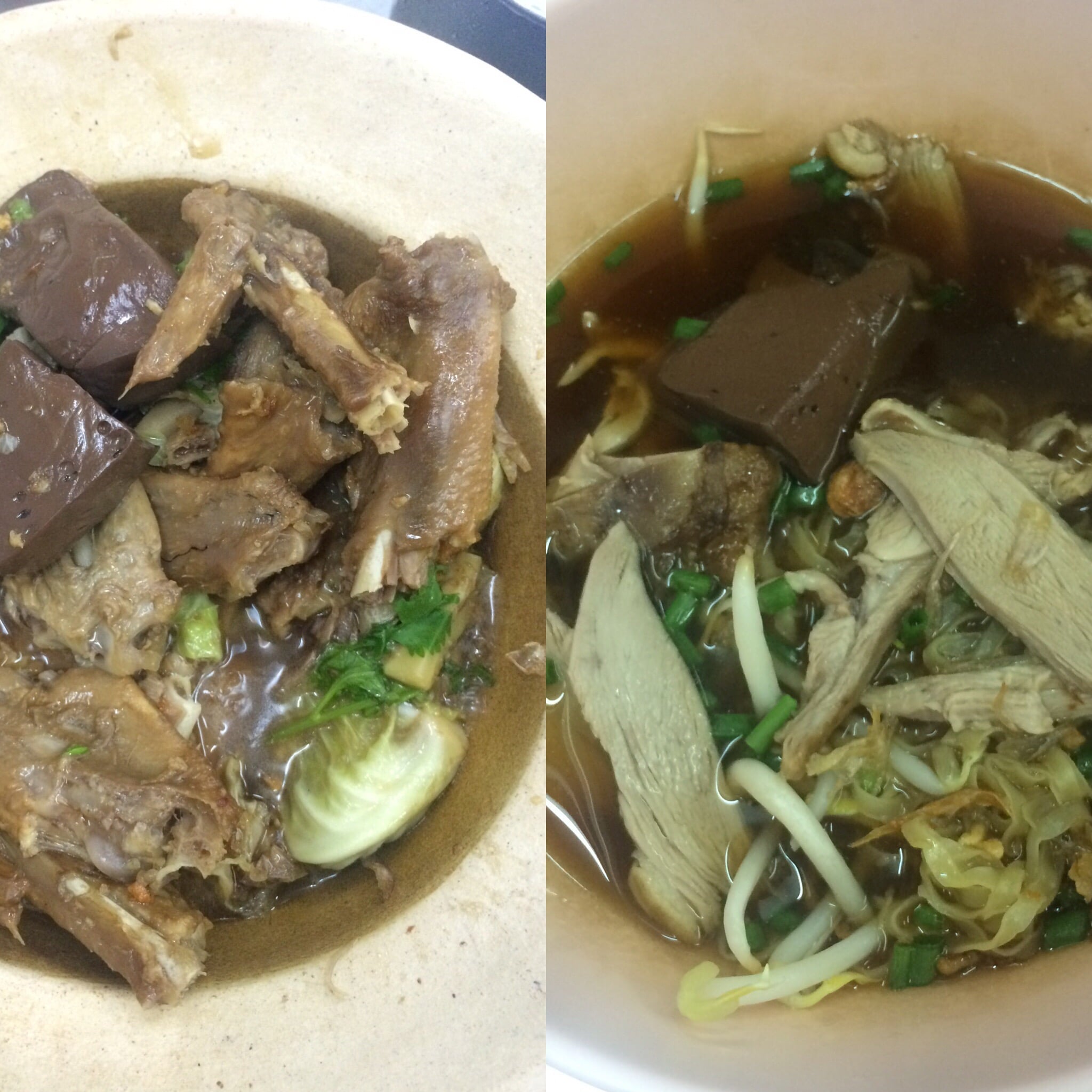 Você vai notar que eu como uma sopa de asa de pato (foto à esquerda). Estas partes ósseas, muito desprezadas na Europa, têm a costa na Ásia. O cubo acastanhado que vês aqui é sangue de porco. Mas é muito bom.