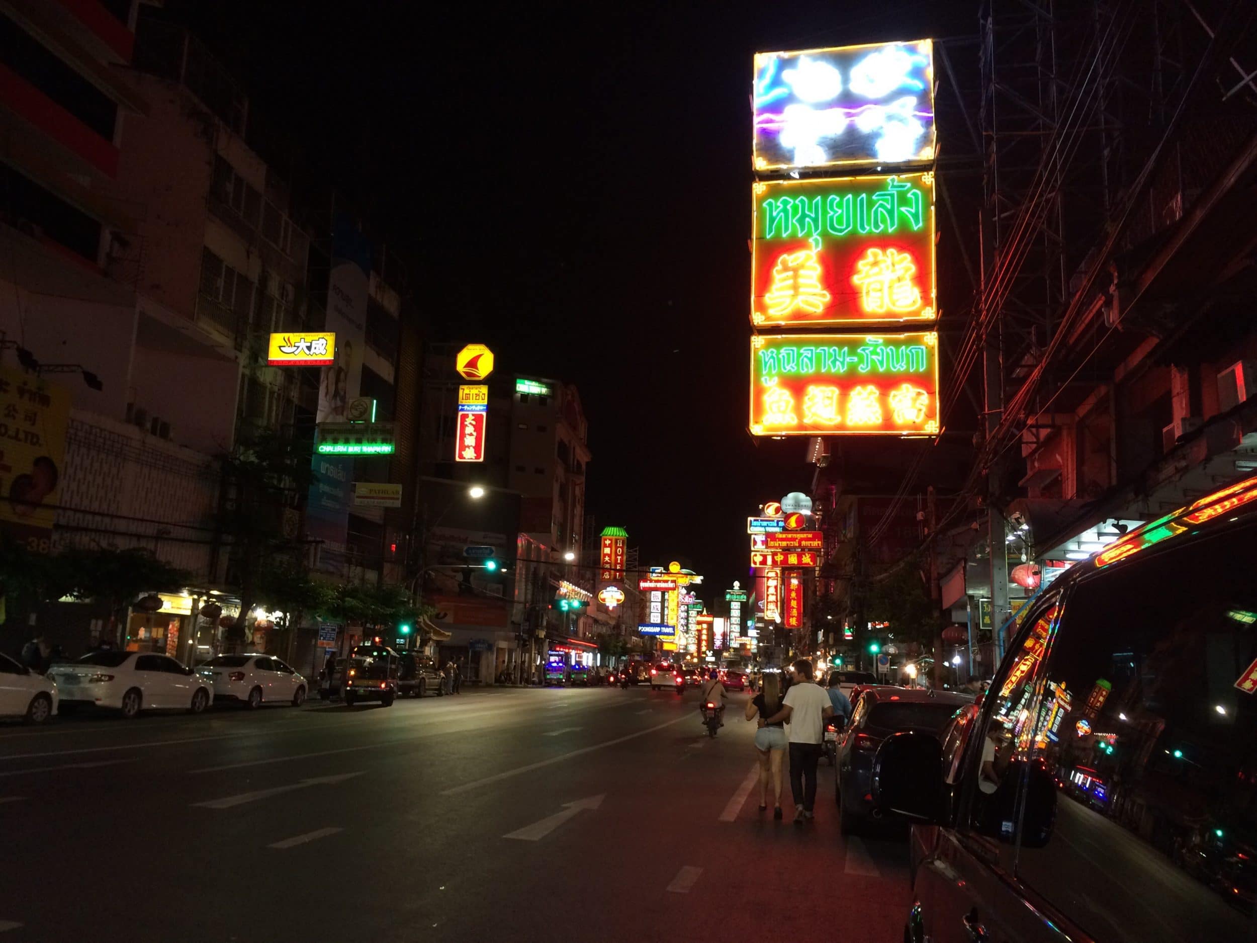 São 22:00, mas felizmente os restaurantes ainda estão abertos. Nós nos acomodamos em um bui bui que tem um menu em inglês, por favor, com algumas fotos. Comemos bem, “não picante”, por 200 bahts (5 euros). Estou na lua, depois de 2 meses a comer vegetarianos apesar de mim, estou num país onde posso comer toda a carne que quiser. É naturalmente para um restaurante especializado em patos que eu parei.