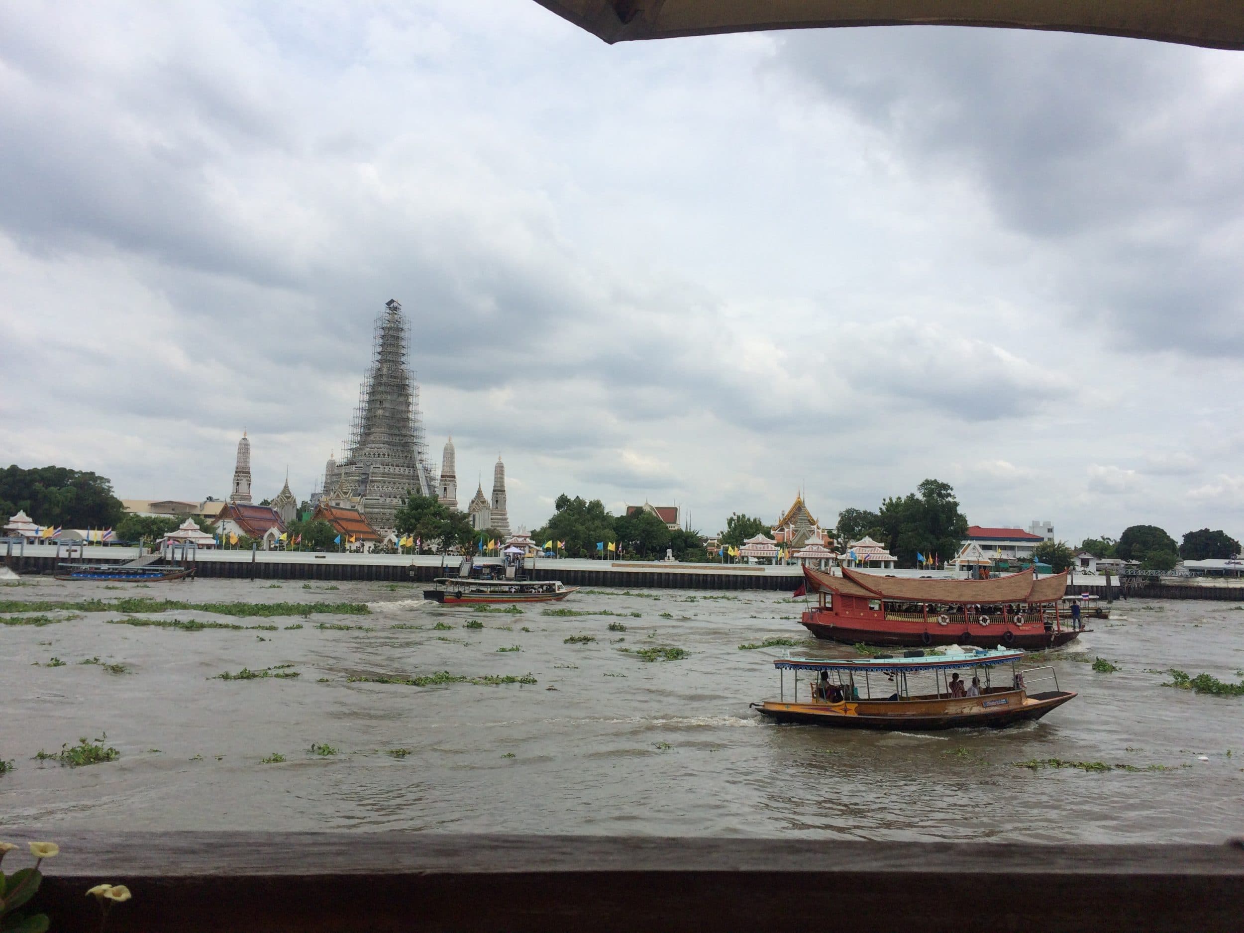Depois da salada de manga, temos um almoço ligeiro num hotel com vista para Wat Arun que está em construção. A bela vista dispensar-nos-á de um passeio de barco.