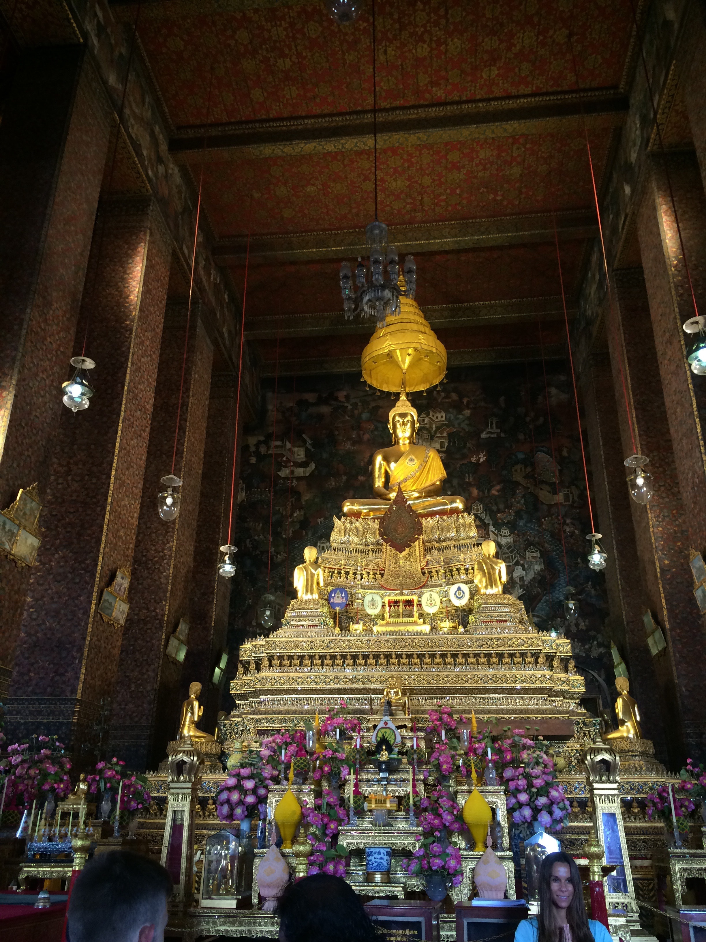 Devolvemos o nosso quarto de hotel e deixamos a bagagem na recepção. Levamos um Uber para ir ao Wat Po e almoçar na área antes de visitar os templos.