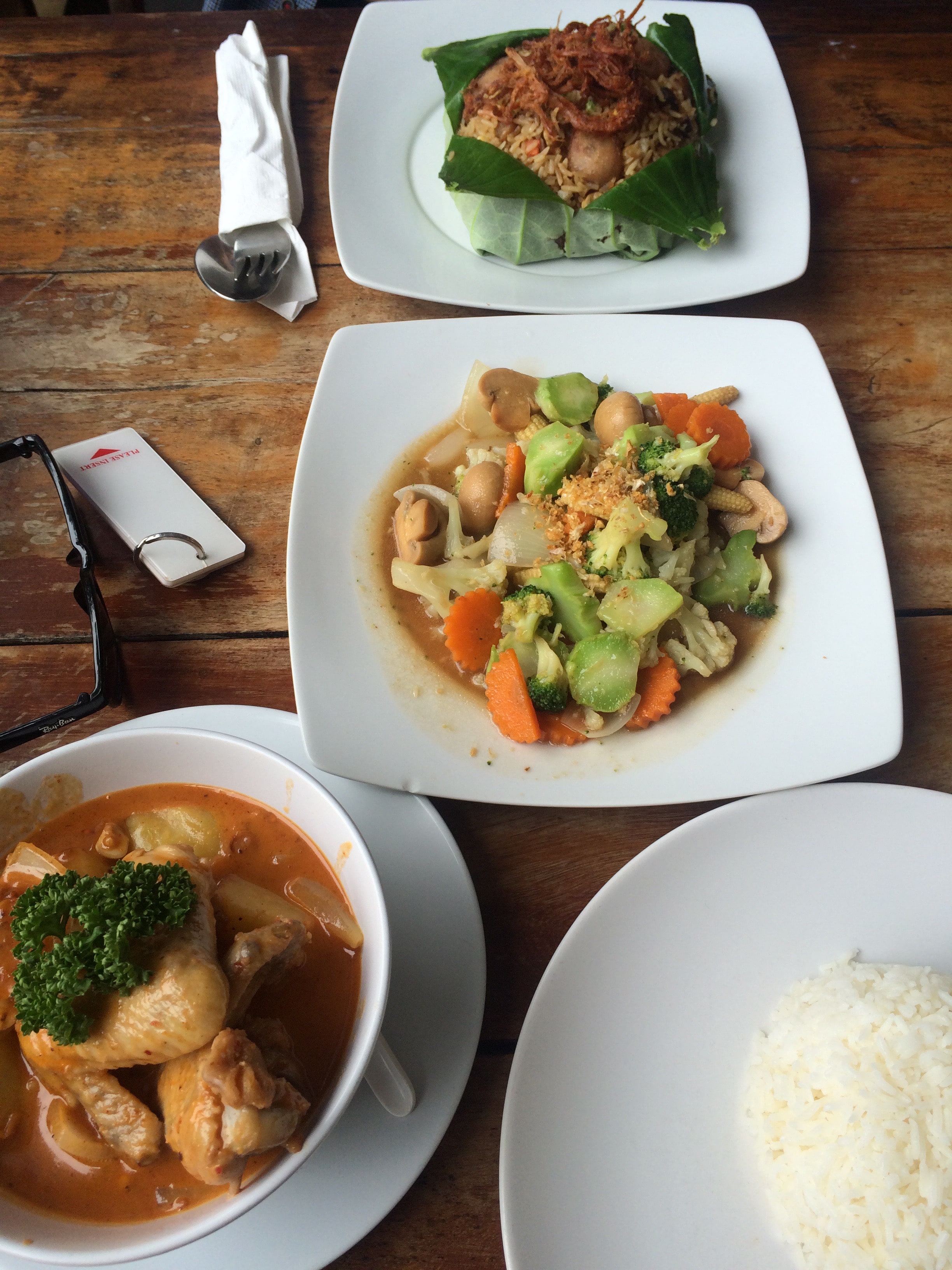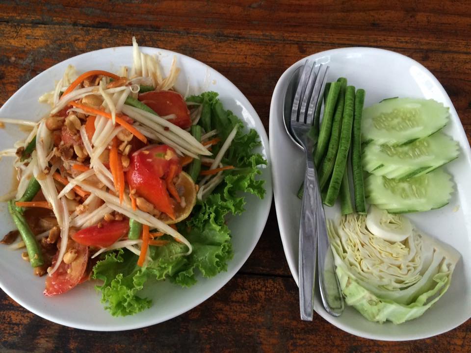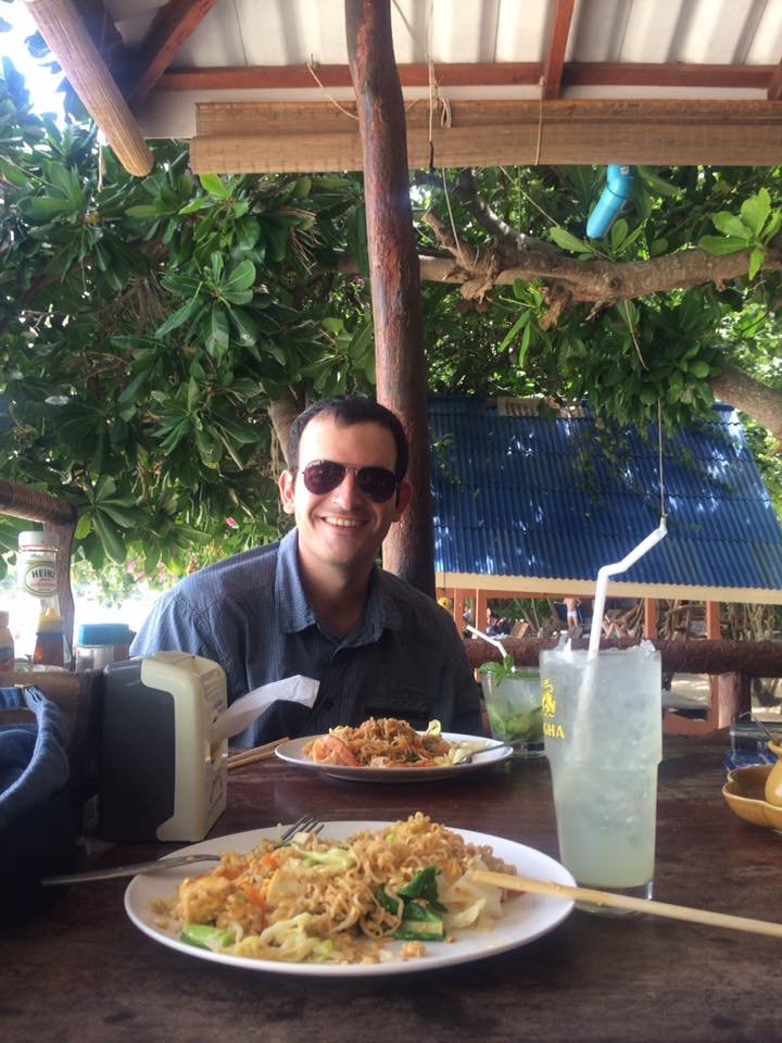 Os muitos bares e restaurantes ao longo da praia são muito bons e baratos. Quase que se pode deitar e olhar para o oceano. JB não entende porque eu como o tempo todo, eu lhe expliquei o conceito (tailandês, vietnamita … bem asiático, ter facilmente 6 refeições por dia, há pratos criados especialmente para o lanche) mas ele acha que é ruim para a saúde. Eu ainda aproveito que não temos nada para fazer na praia para comer a cada duas horas