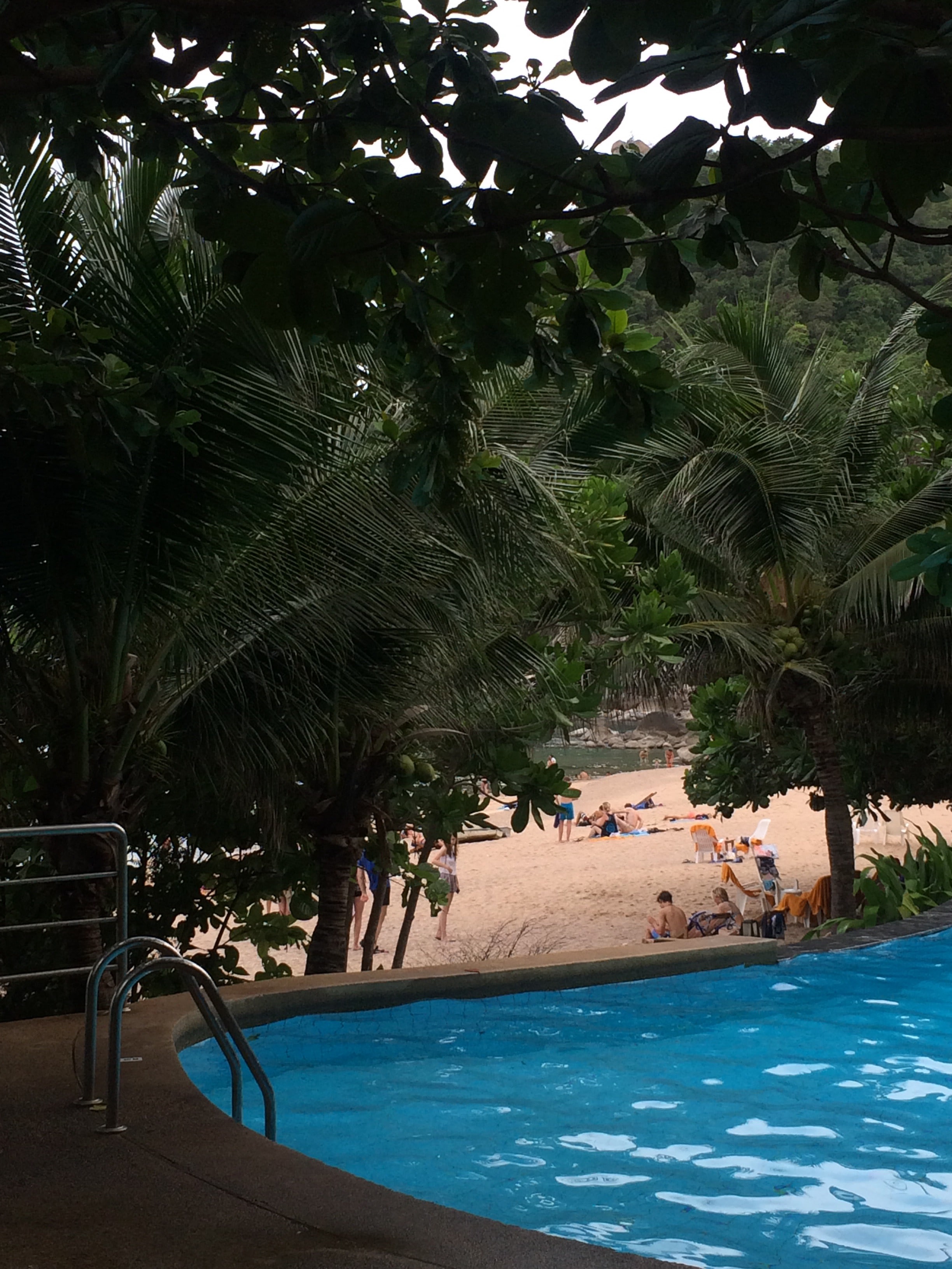 Chegando ao hotel, decidimos desfrutar imediatamente da piscina, da praia e do Golfo da Tailândia