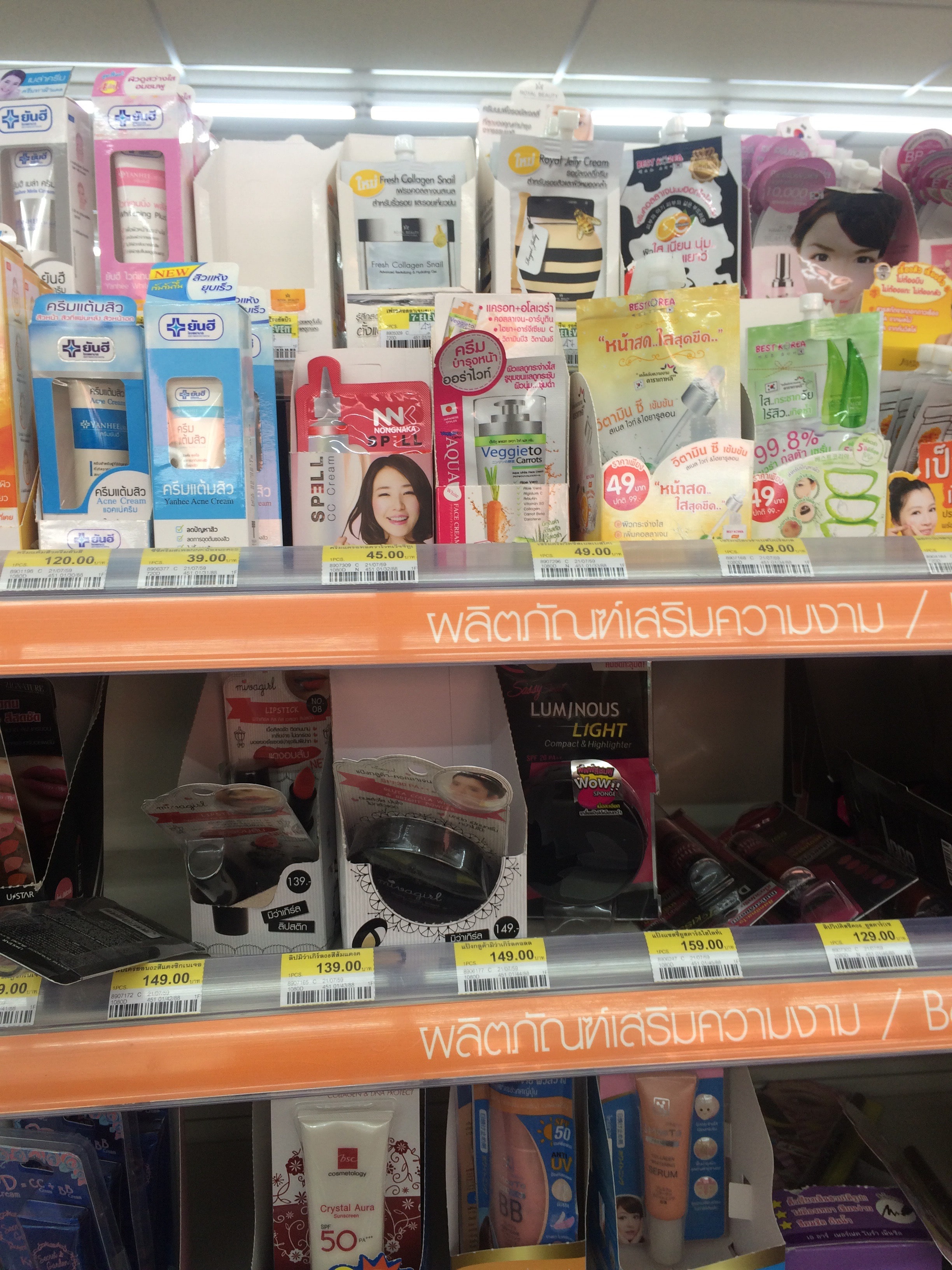Às 7 onze (o supermercado), eu encontro muitas coisas em miniatura ou em formato de viagem. Todos os que viajam na Ásia sabem que champôs de pequeno formato (1ml) estão à venda em todos os lugares. Bem, na Tailândia, as miniaturas não se aplicam apenas aos champôs, mas também aos cuidados do cabelo, creme hidratante, protector solar..