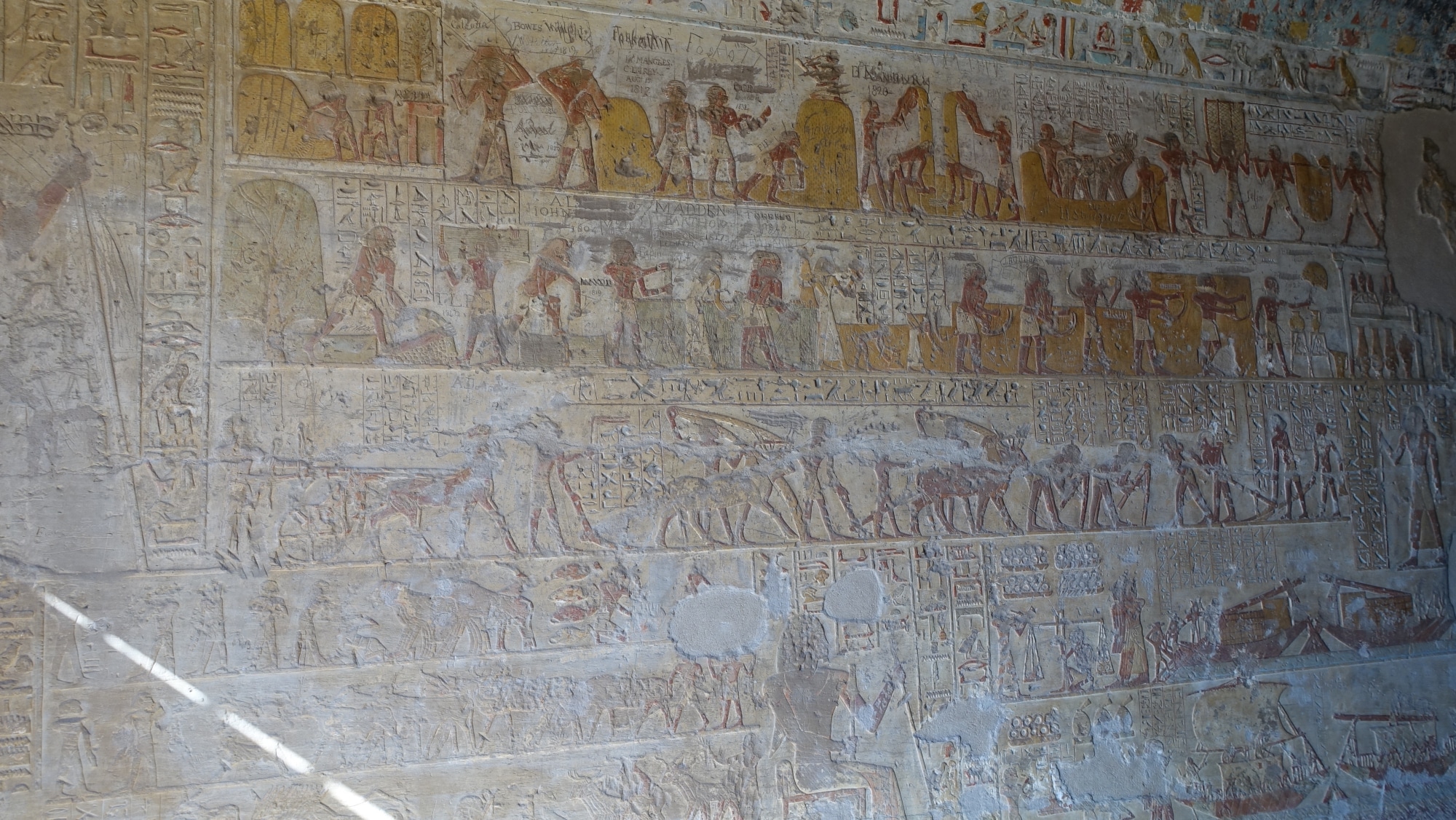 Como resultado, as cenas e os hieróglifos são diferentes, há cenas da vida diária, como a colheita, o trabalho da terra..