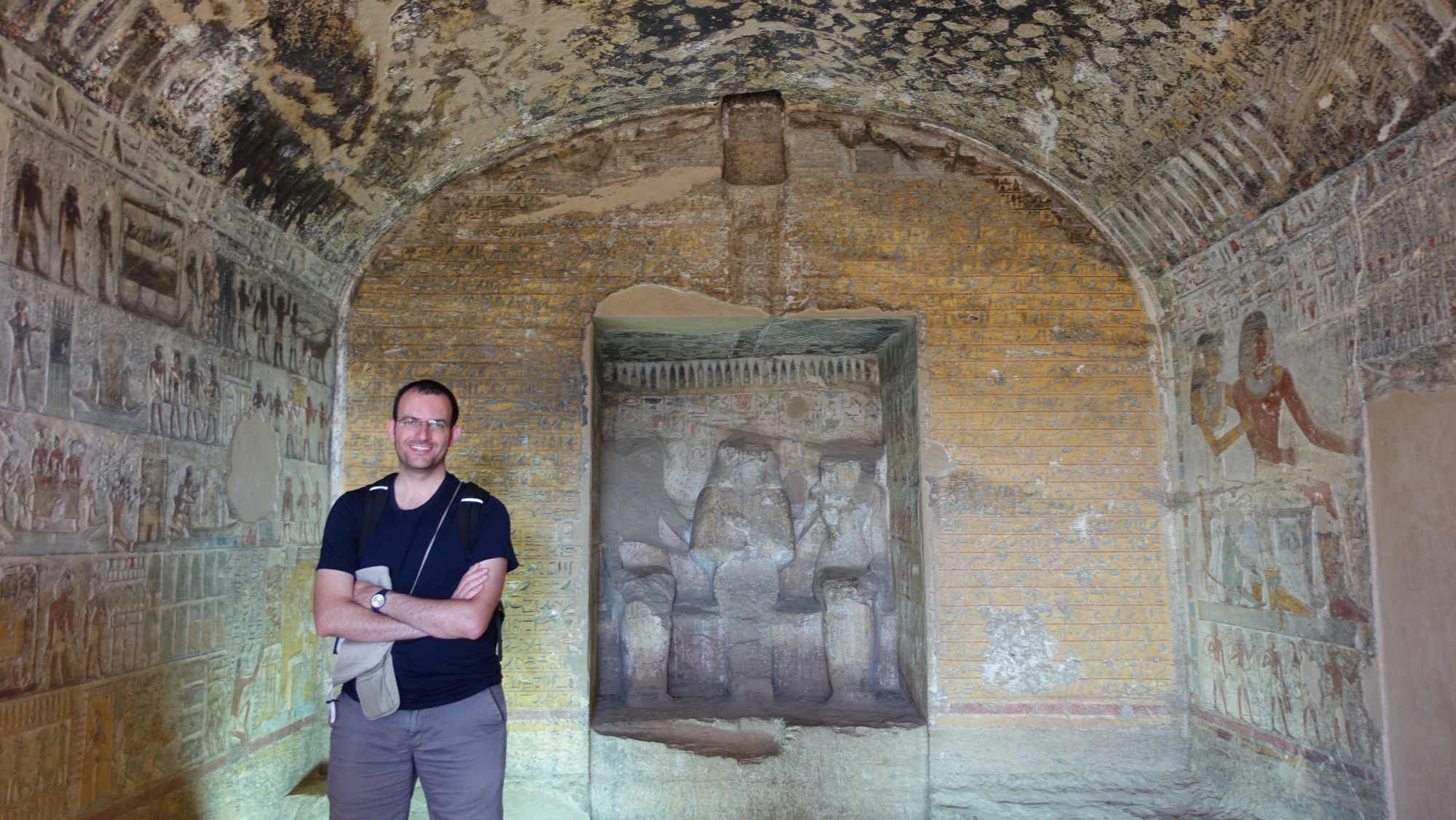 Isto é o interior de uma sepultura. É muito diferente dos túmulos reais que vemos em Luxor. Aqui visitamos os três túmulos de antigos padres/governadores da cidade