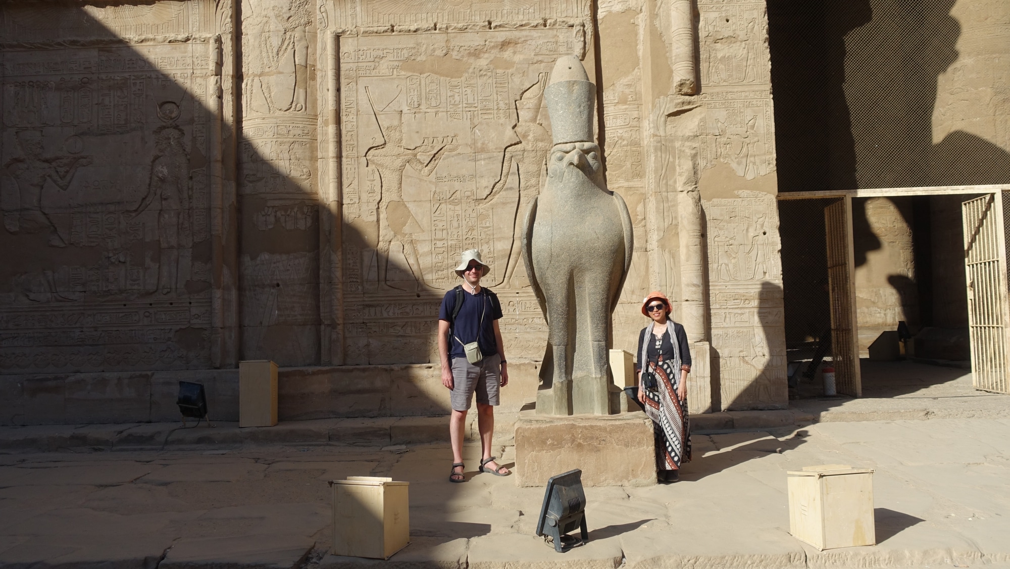 Para o templo de Edfu, é melhor vir como nós entre 13h e 14h porque os grandes navios de cruzeiro vêm visitá-lo pela manhã e os dahabiya por volta das 14h. O local é fechado às 16h