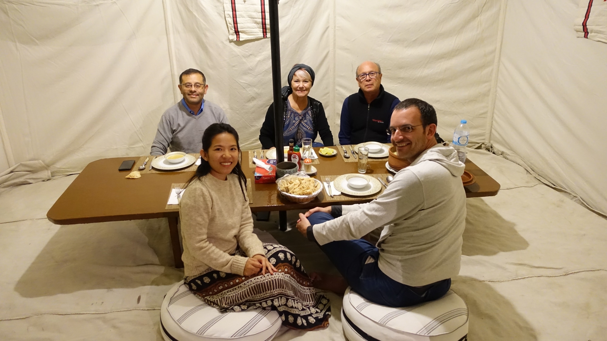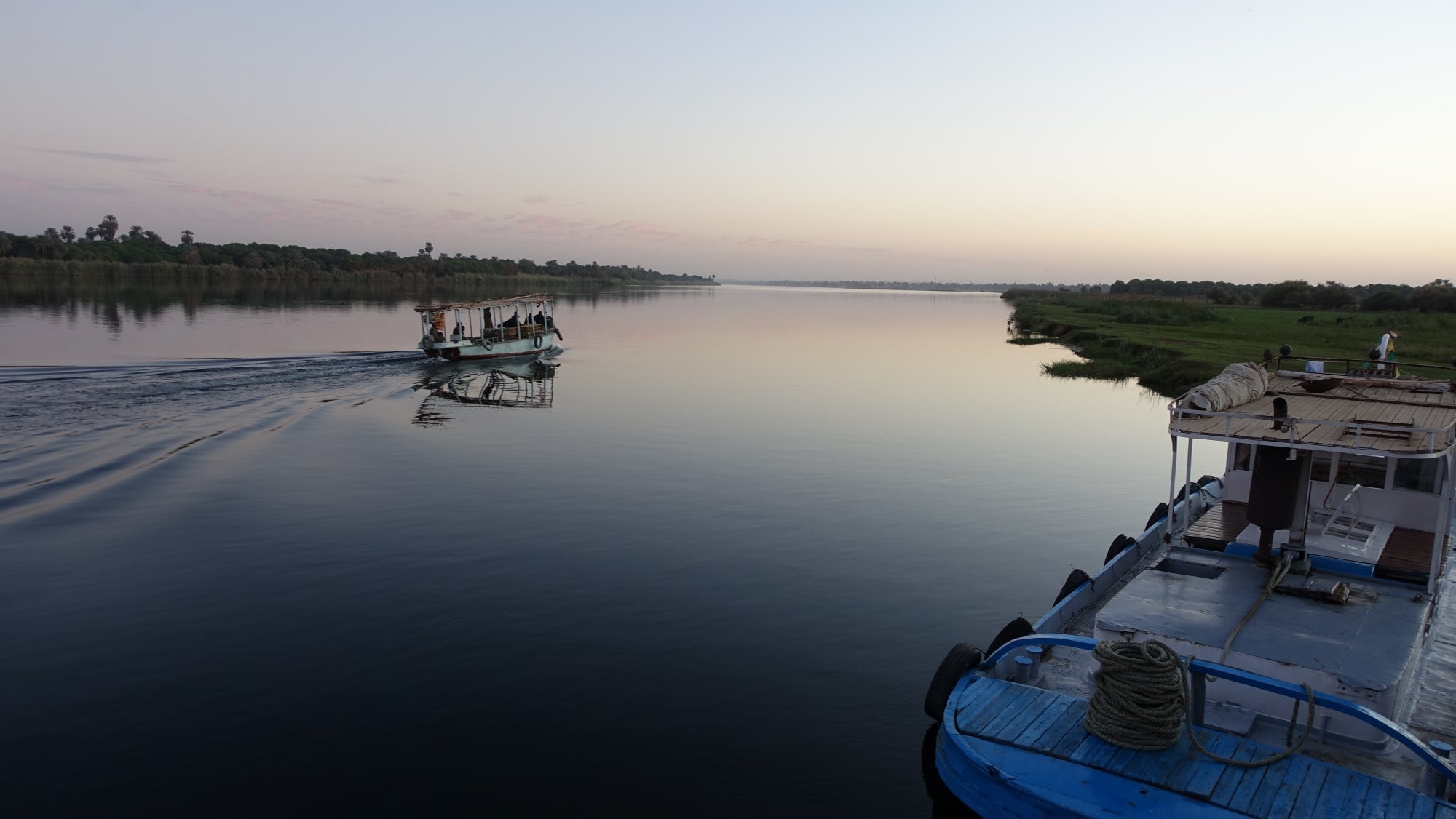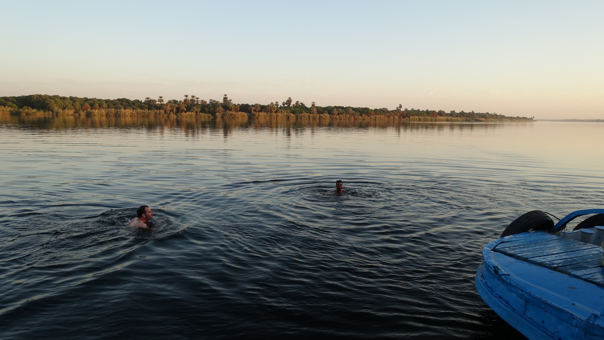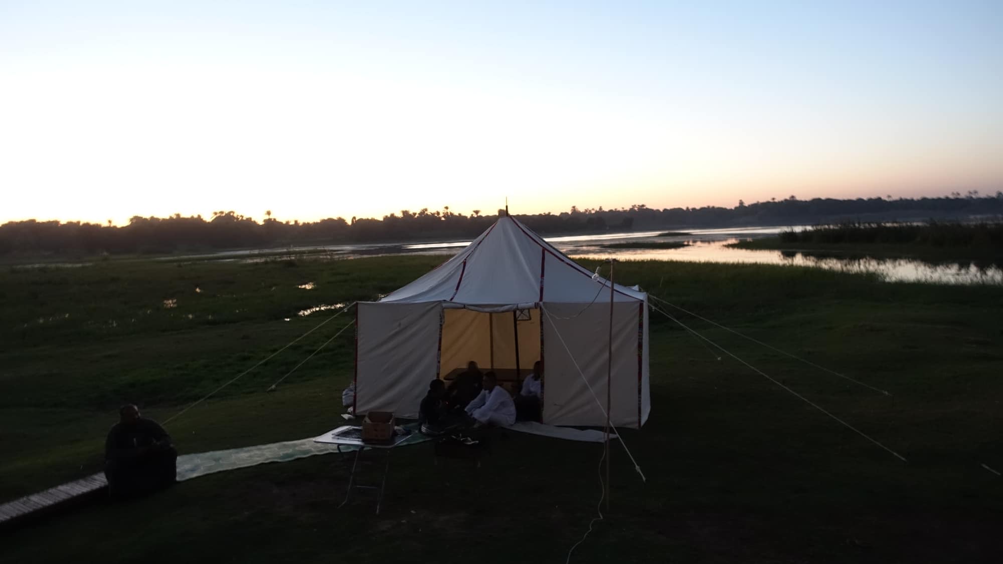 Jantamos na tenda (jantar real como sempre) e toda a tripulação vem tocar música núbia e egípcia (em percussão) e dançamos juntos. Outros dahabiya fazem a mesma coisa, mas sem a tenda porque não teriam conseguido caber uma dúzia de convidados em uma tenda. Neste caso, eles jantam lá fora em cadeiras, mas parece muito bonito também