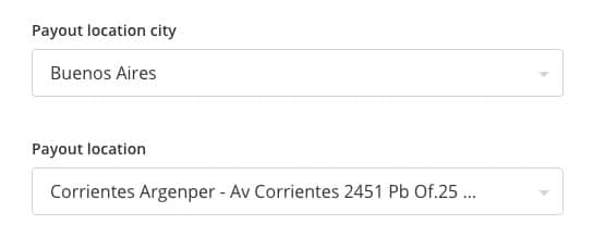 Escolha o país. No caso da Argentina, apenas uma moeda (o Peso Argentino) e um método de retirada está disponível.