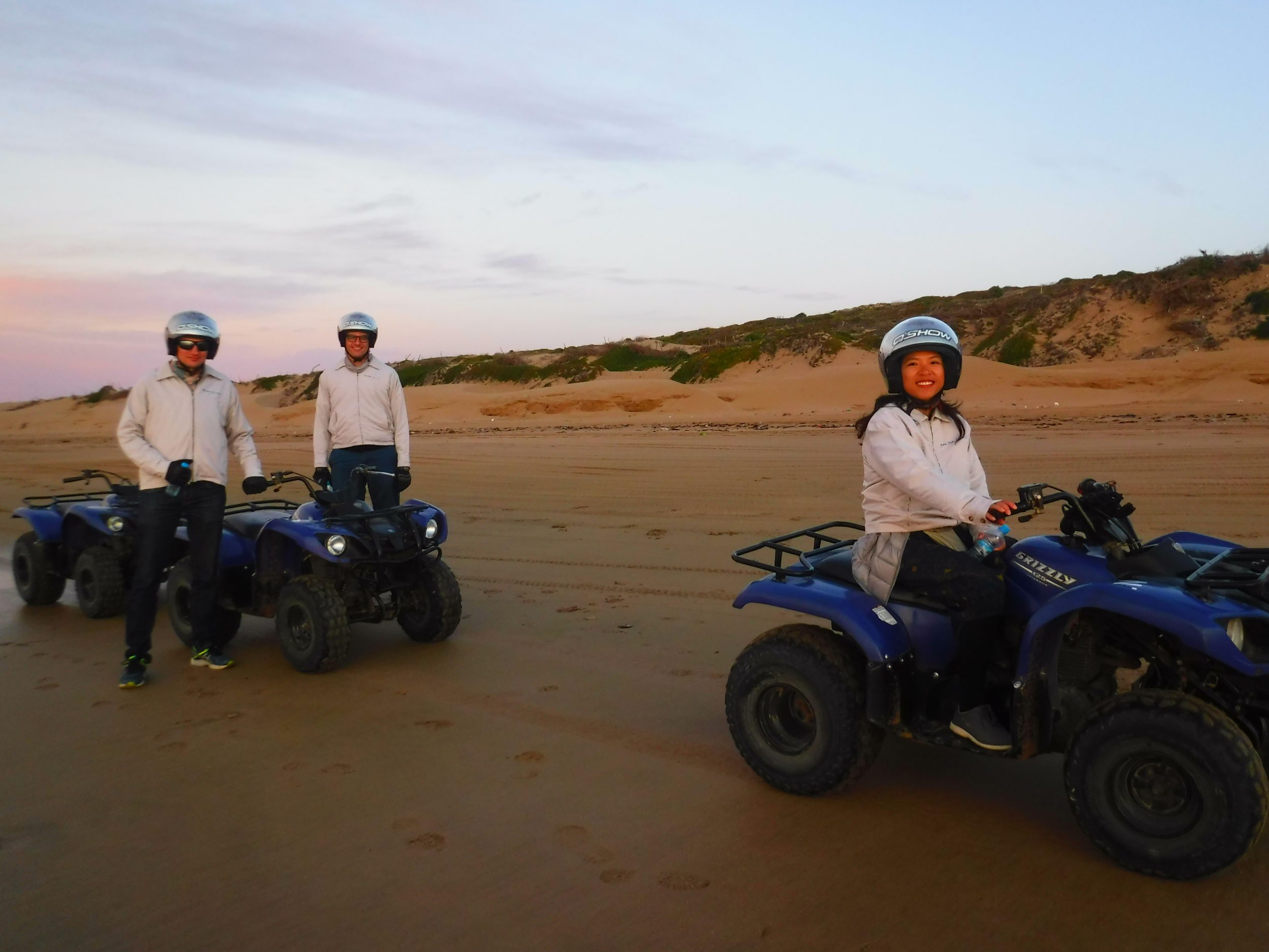 Quanto mais longe se chega de Essaouira, mais deserta é a praia. Encontramo-nos sozinhos, com alguns turistas a cavalo a admirar o pôr-do-sol enquanto conduzíamos o nosso quad. Sublime!