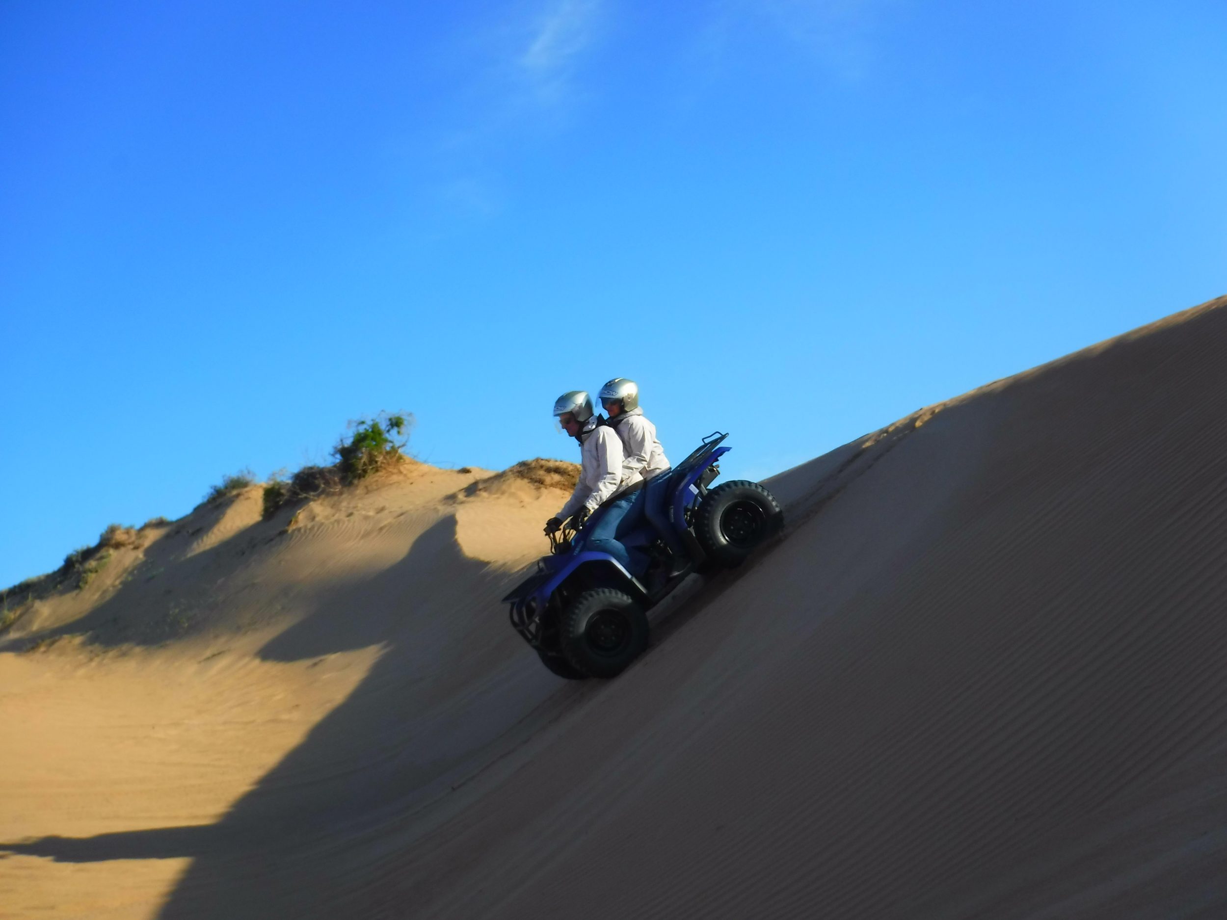 Se o percurso na praia é realmente tranquilo, é emocionante descer, derrapar e subir as dunas de areia. Grande sensação!
