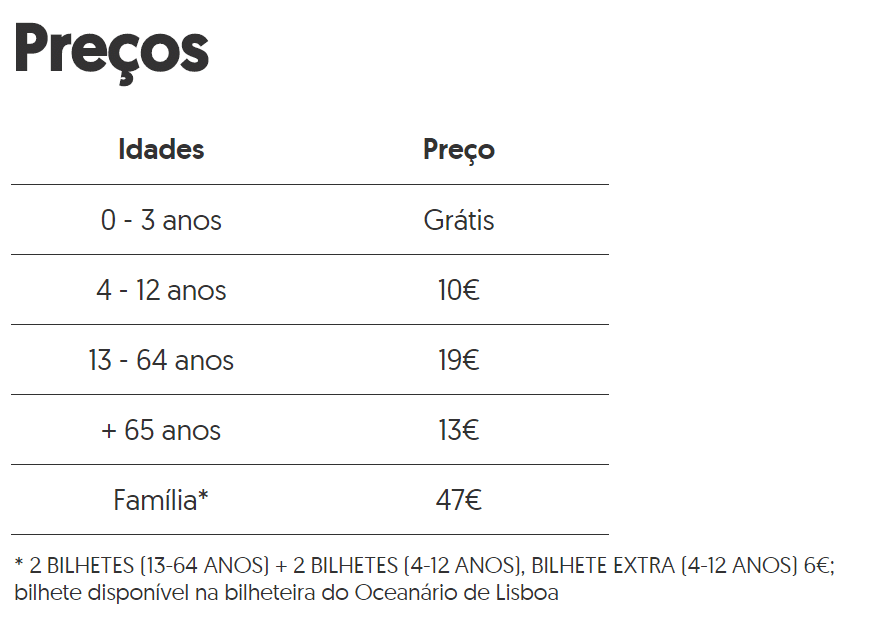 Bilhete: 19 euros/adulto em 2020