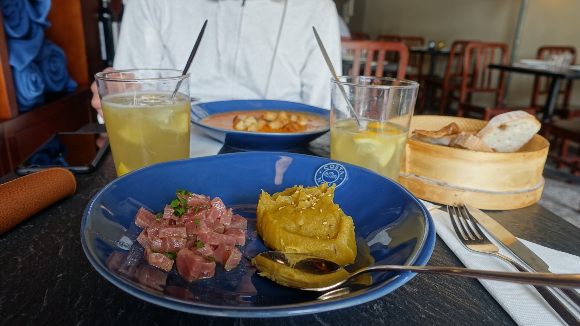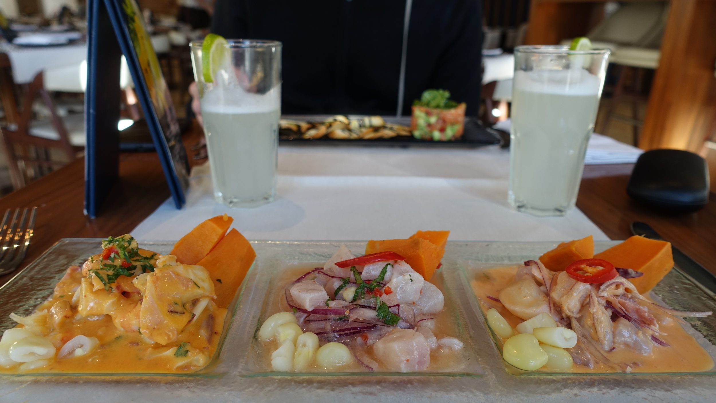 Depois deste caro mini-tartare, ainda estou com fome e acabamos em um restaurante peruano e optamos por um trio de ceviche (tártaro de peixe). Um massacre! É verdade, é caro (23 euros) mas vale o preço. Até nos serviram um pouco de milho peruano(choclo). É tão bom como em Cuzco, quer dizer!
