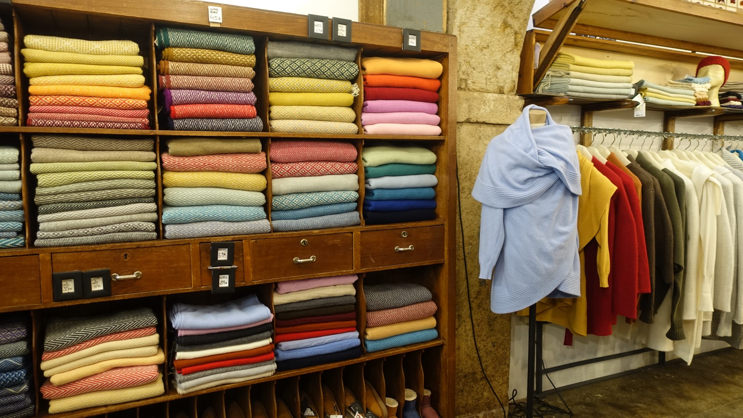 Alguns metros mais abaixo, você encontrará esta linda loja, ideal para aqueles que amam materiais bonitos. Aqui encontrará muita roupa de lã de malha à mão, colchas, casacos, cachecóis em lã portuguesa. Faz-nos querer demasiado, e não é assim tão caro.