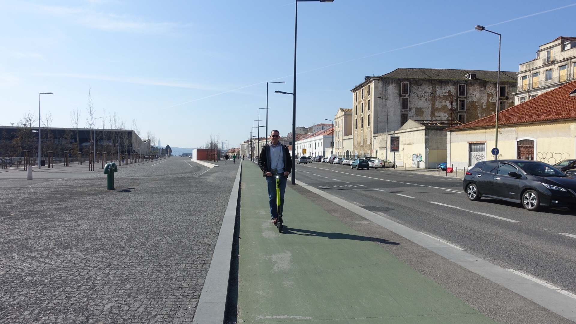É super divertido, rápido. Infelizmente em Lisboa há muitas pedras e montes de paralelepípedos! E conduzir no pavimento não é nada agradável. Só fazemos percursos onde existem caminhos planos para bicicletas, ou seja, desde Santa Apolónia (perto de nós) até ao Terreiro do Paço. Esta viagem ter-nos-ia custado 1,3 euros de metro, mas 2,5 euros de scooter. Não necessariamente barato, mas é mais agradável e super divertido, e temos 30 minutos gratuitos quando nos registamos com o código DVbUMQ4Q