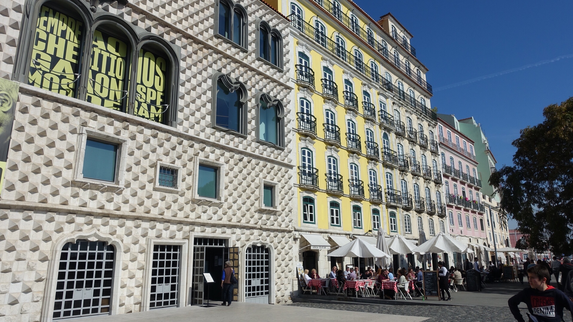Assim que chegámos, fomos atingidos por esta estranha fachada com espigões. É a Casa dos Biscos, construída pelo filho do Vice-Rei da Índia em 1523. Acolhe agora a Fundação José Saramago (Prémio Nobel da Literatura).