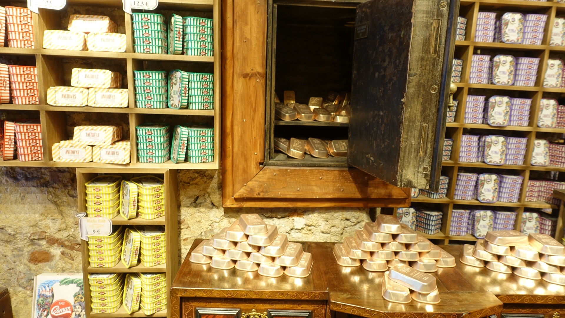 Em segundo lugar, há Silva e Feijoo, onde você pode encontrar peixes enlatados de muitos tipos diferentes. Os preços são muito altos (entre 7 e 15 euros), mas é um banquete para os olhos. Também vendem peixe enlatado em forma de lingotes de ouro 😀