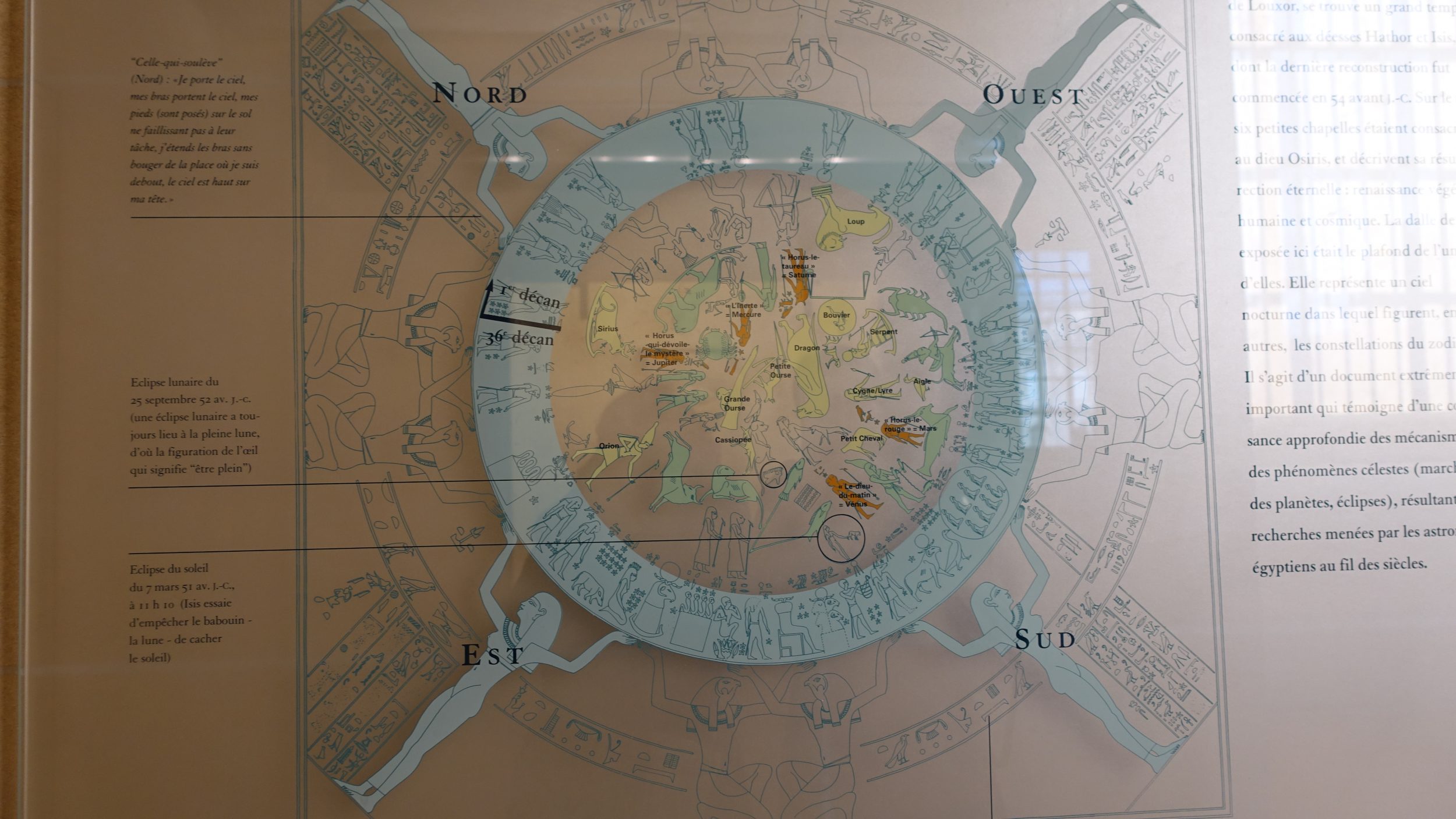 Durante nossa viagem ao Egito, nosso guia nos contou muito sobre o templo em Dendera e um teto onde pudemos ver os doze signos astrológicos. O original foi desmontado e trazido de volta a Paris e está agora no museu do Louvre. Não sei porquê, mas falava muito comigo e eu tinha absolutamente de ir vê-lo.