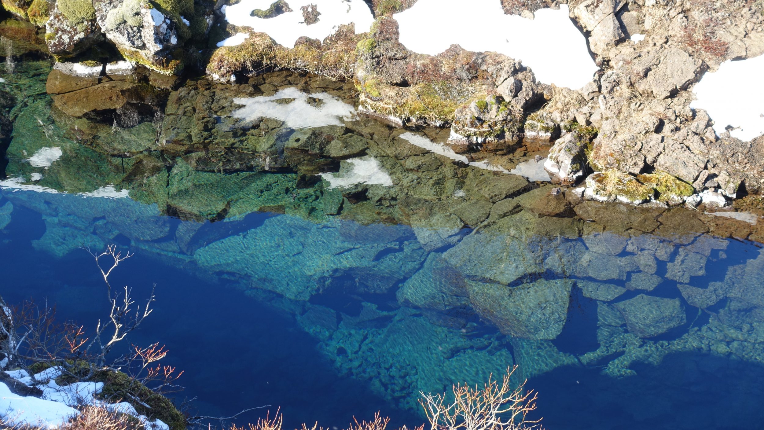 De qualquer forma, o que eu realmente gostei foi da fenda Silfra. Ir para o estacionamento P5 e a 5 minutos a pé é esta falha, de onde mergulhadores e snorkellers partem para descobrir a falha entre dois continentes.