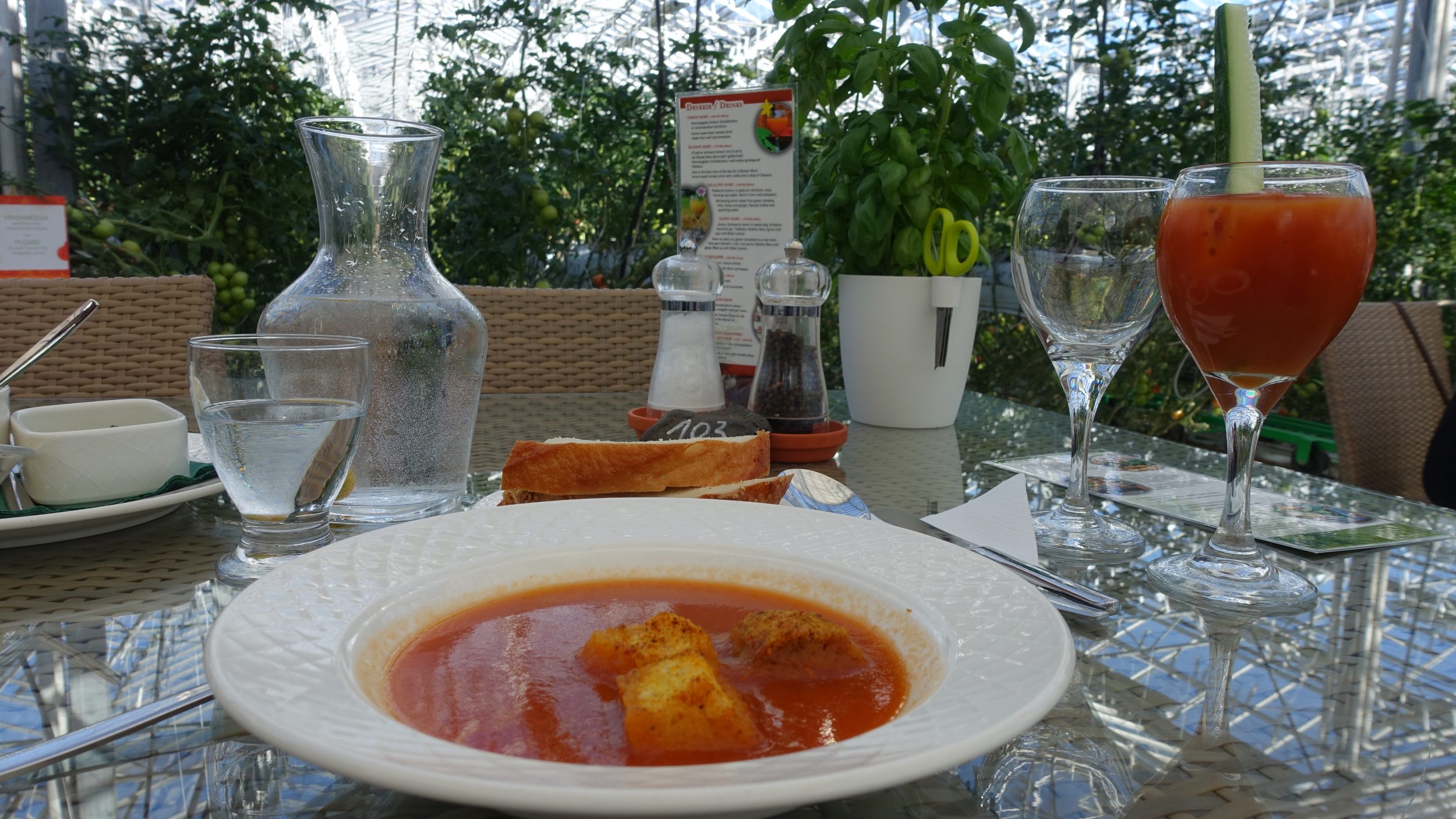 Como eu estou fazendo o programa e JB é o motorista, ele tem direito a algumas surpresas agradáveis, como esta. É um restaurante em uma estufa de tomates! Sim, com um clima tão frio, você precisa de estufas para cultivar legumes