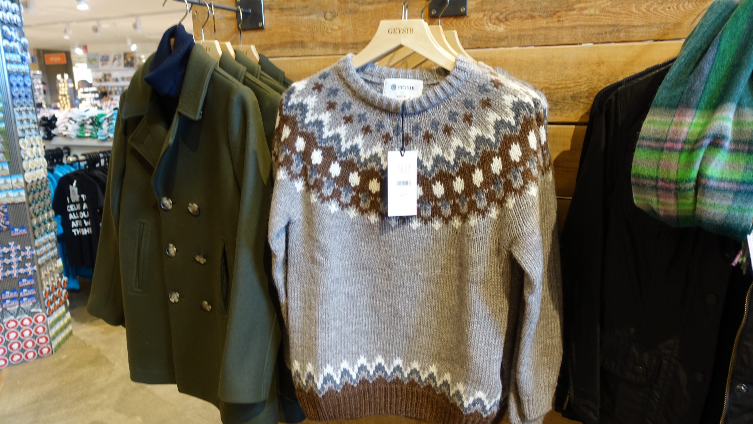 Passamos rapidamente ao Centro de Informação e Lembranças para ver a famosa camisola de lã islandesa, que tem um design muito distinto e ainda é usada pelos jovens. Custa cerca de 160 euros, é feito à mão, mas ohlalaa que comichão