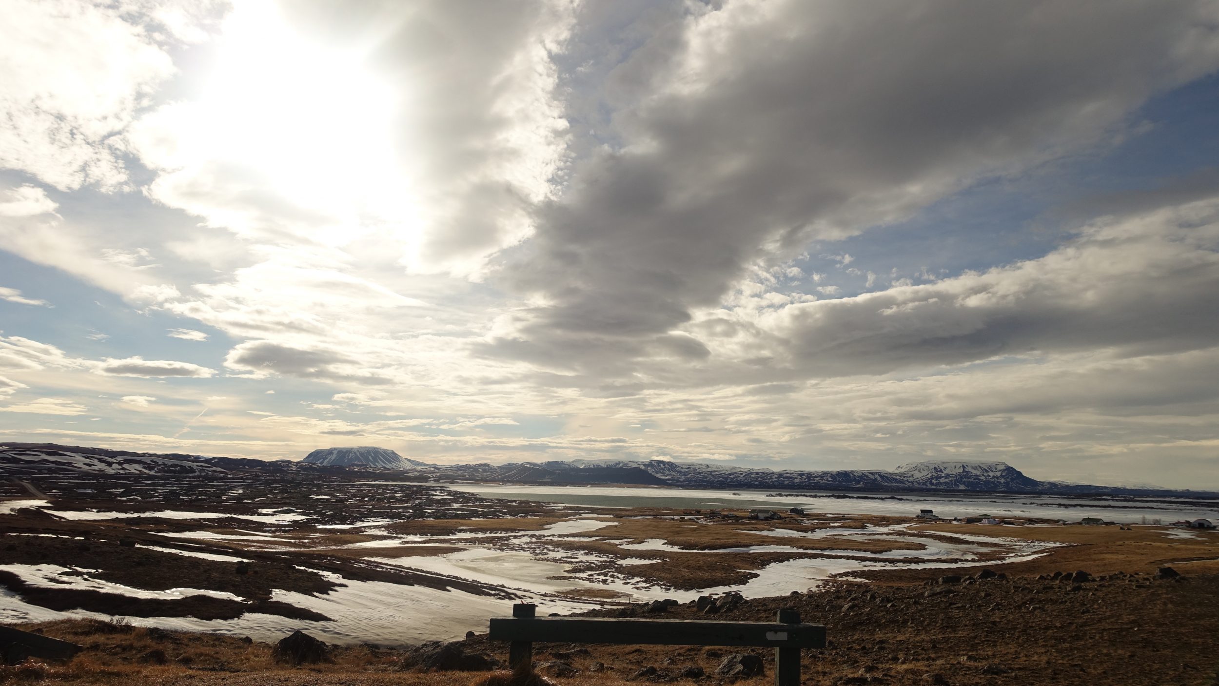 O lago Myvatn é enorme e parcialmente congelado. Ao passar por um mirante perto do lago, JB teve a louca idéia de caminhar sobre ele (ver marcas de pneus no lago). Felizmente esta parte está realmente congelada, tudo acaba bem.