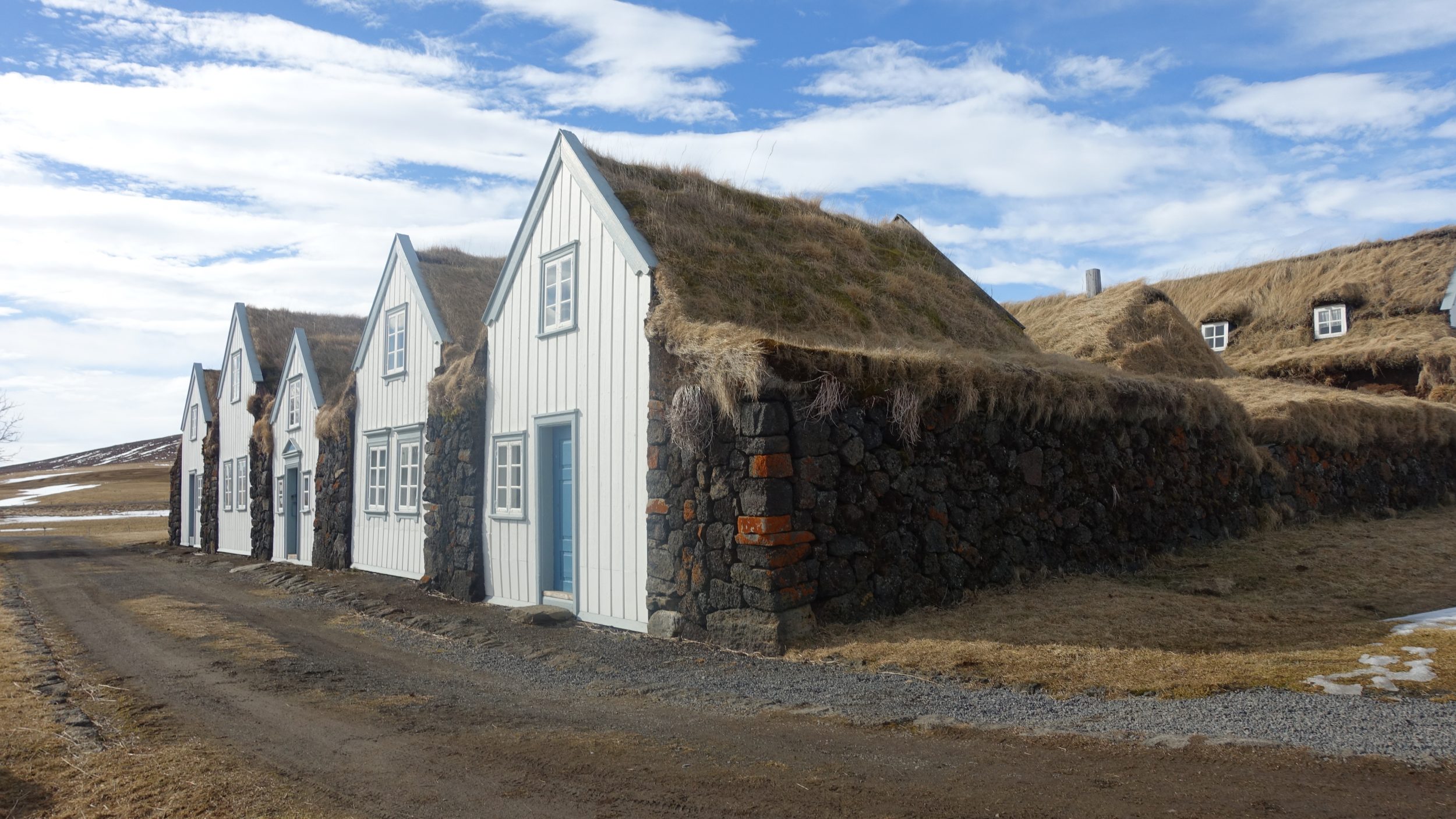 Gosto muito de casas com telhados de relva, faz-me lembrar a Noruega, por isso no caminho para Husavik, fazemos aqui um pequeno desvio. É uma fazenda antiga, que podemos visitar no verão. Ao contrário é uma típica igreja islandesa, muito bonita também. Como está tudo fechado, é apenas uma paragem fotográfica para nós.