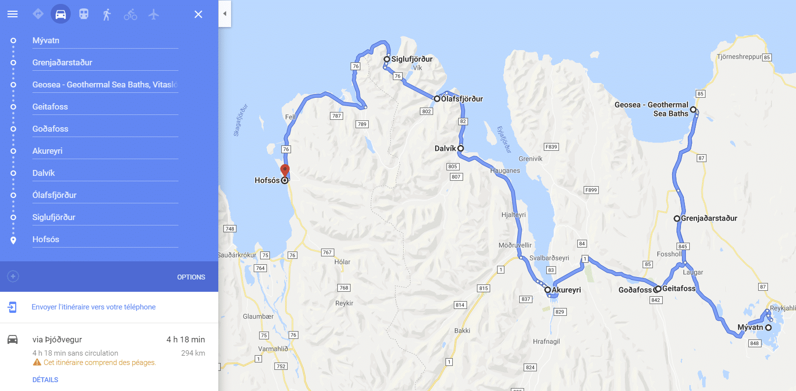 Mesmo antes de chegarmos a Akureyri, temos de passar por um túnel de portagem. Há apenas dois sinais: um antes, e outro depois do túnel, anunciando que temos de pagar. Felizmente a nossa empresa de aluguer de automóveis colocou uma placa no seu escritório: temos de ir ao tunnel.is para pagar a taxa dentro de 3 horas após a nossa passagem. Acho que eles tiram fotos de todas as matrículas dos carros. Em qualquer caso, quando lá vamos, basta dar a matrícula do carro, eles reconhecem imediatamente o modelo e a cor do carro. E se você não pagar a tempo, o proprietário do carro será debitado, e você será multado – à empresa de aluguel de carros – no final.