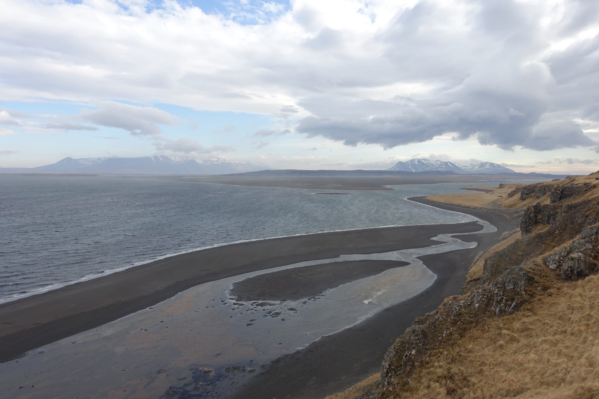 Gostei da imagem desta formação rochosa, e fizemos uma estrada de cascalho de propósito para vir até aqui, para descobrir uma rocha super pequena (tem 15m de altura mas de longe é minúscula). Por sorte a praia de areia preta é linda, e o rio também.