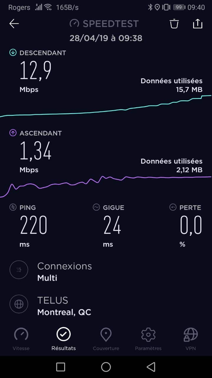 EDIT: A partir de 10 de maio de 2019, começo a ter 4G intermitentemente com taxas de fluxo muito melhores.