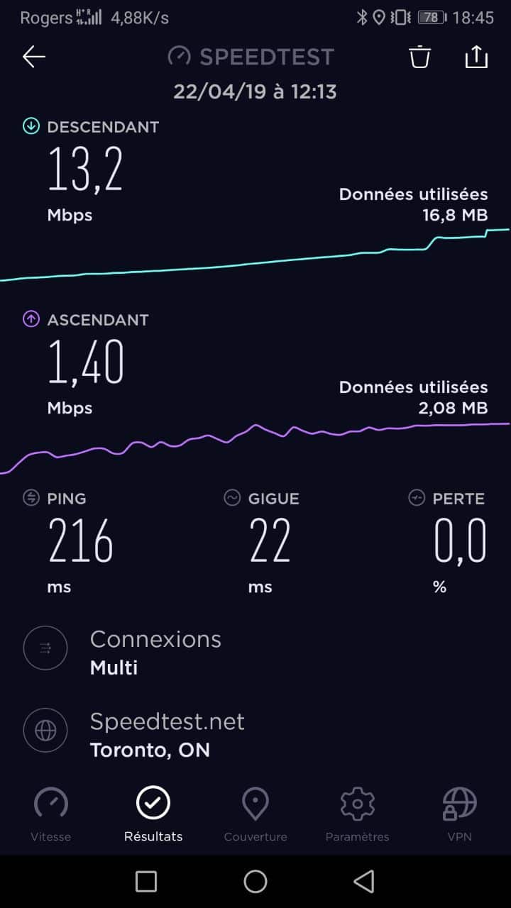 A taxa de fluxo está correcta, nada mais. O teste abaixo mostra um download a 13Mbps e um upload a 1.4Mbps sabendo que eu vejo regularmente slowdowns.