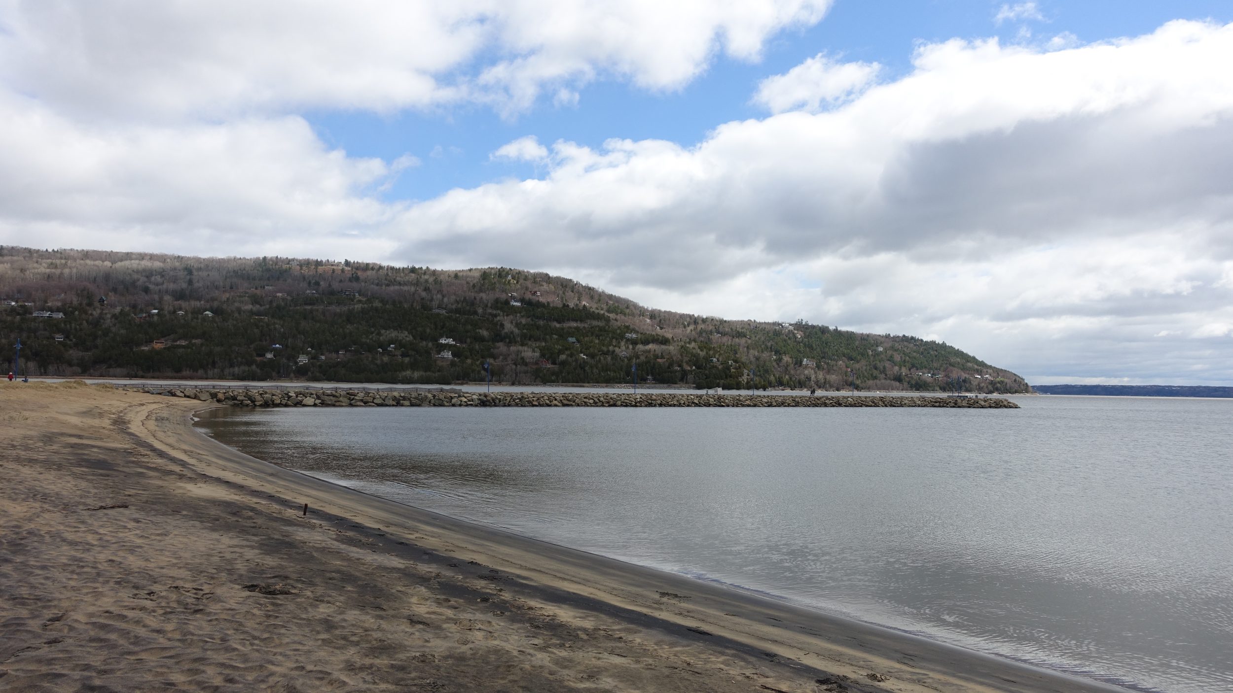 Aventuramo-nos até ao Petit Saguenay, por uma pequena estrada. A estrada parece durar uma eternidade, não há nada no caminho, não há lojas, não há restaurantes, e estamos super famintos. Quando chegamos ao centro de Petit Saguenay, compramos petiscos no posto de gasolina. Antes de tomar uma pequena estrada (tipo Rue du Quai no Google Maps) para o rio Saguenay. A água hoje não é muito agradável, mas o lugar é muito agradável, com algumas mesas de piquenique.