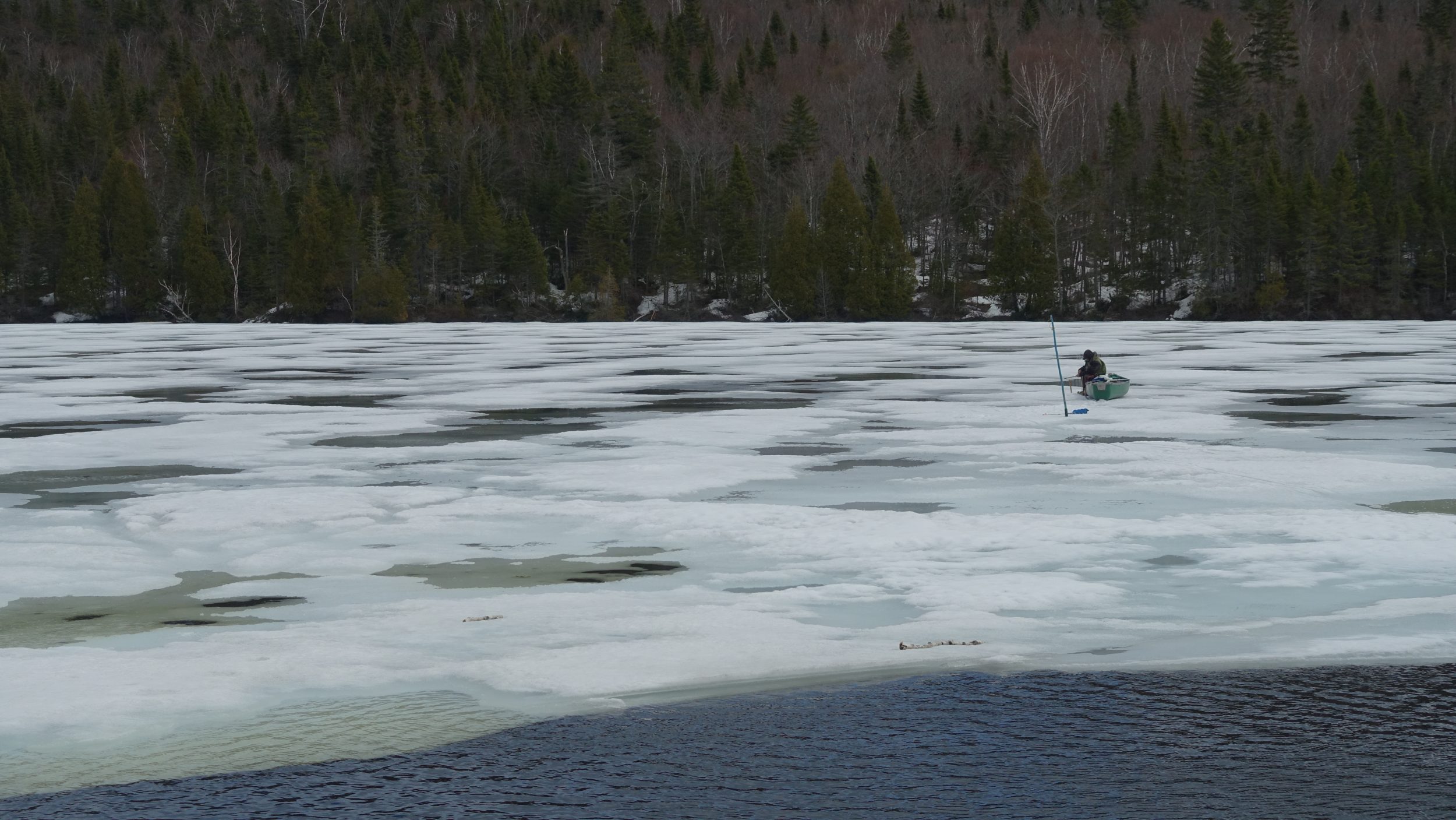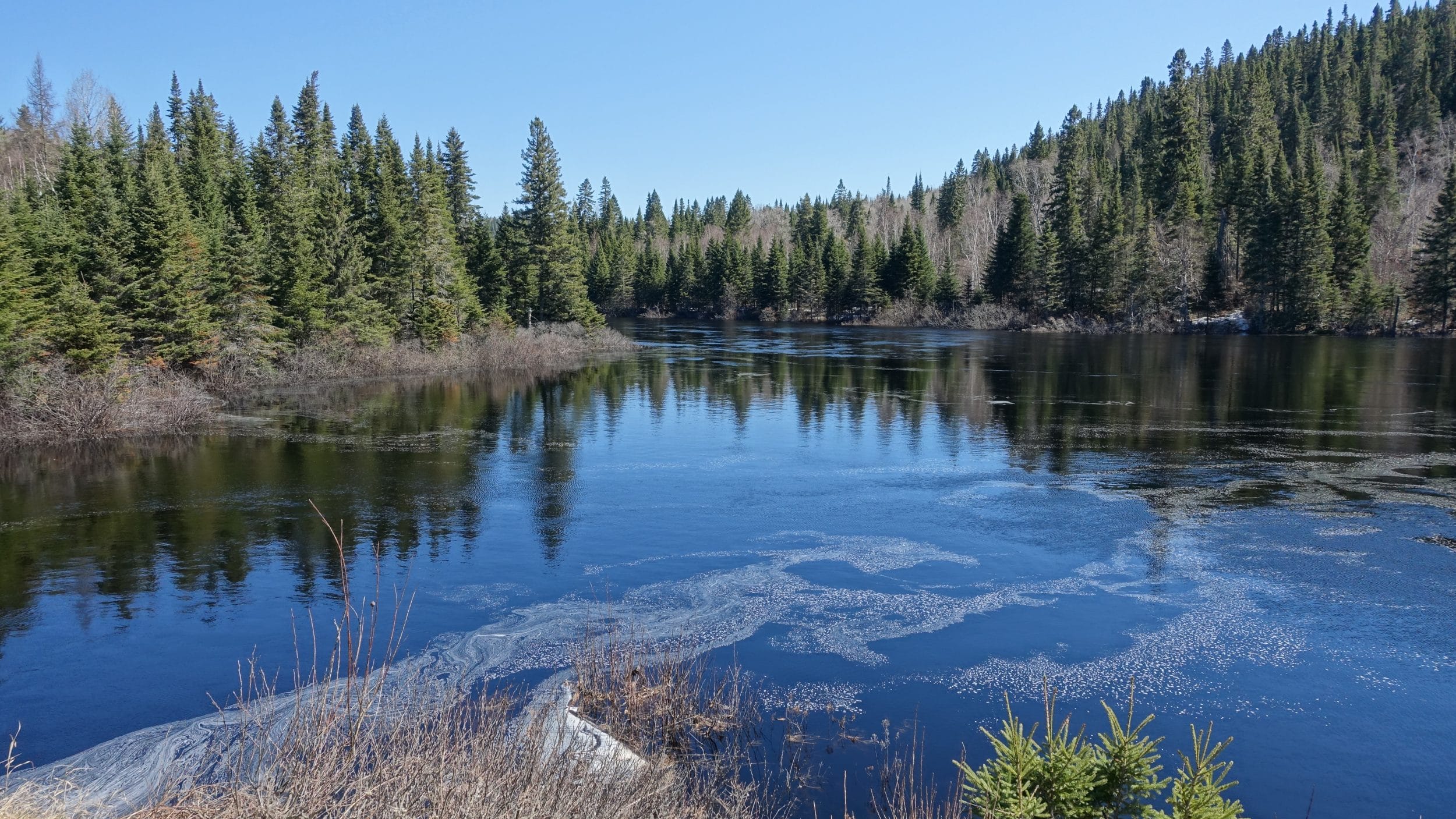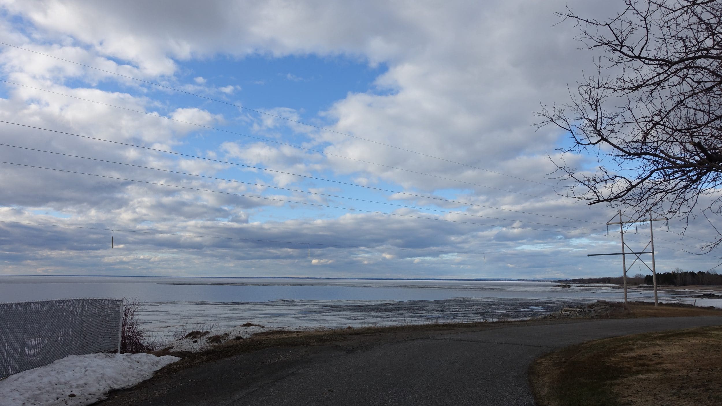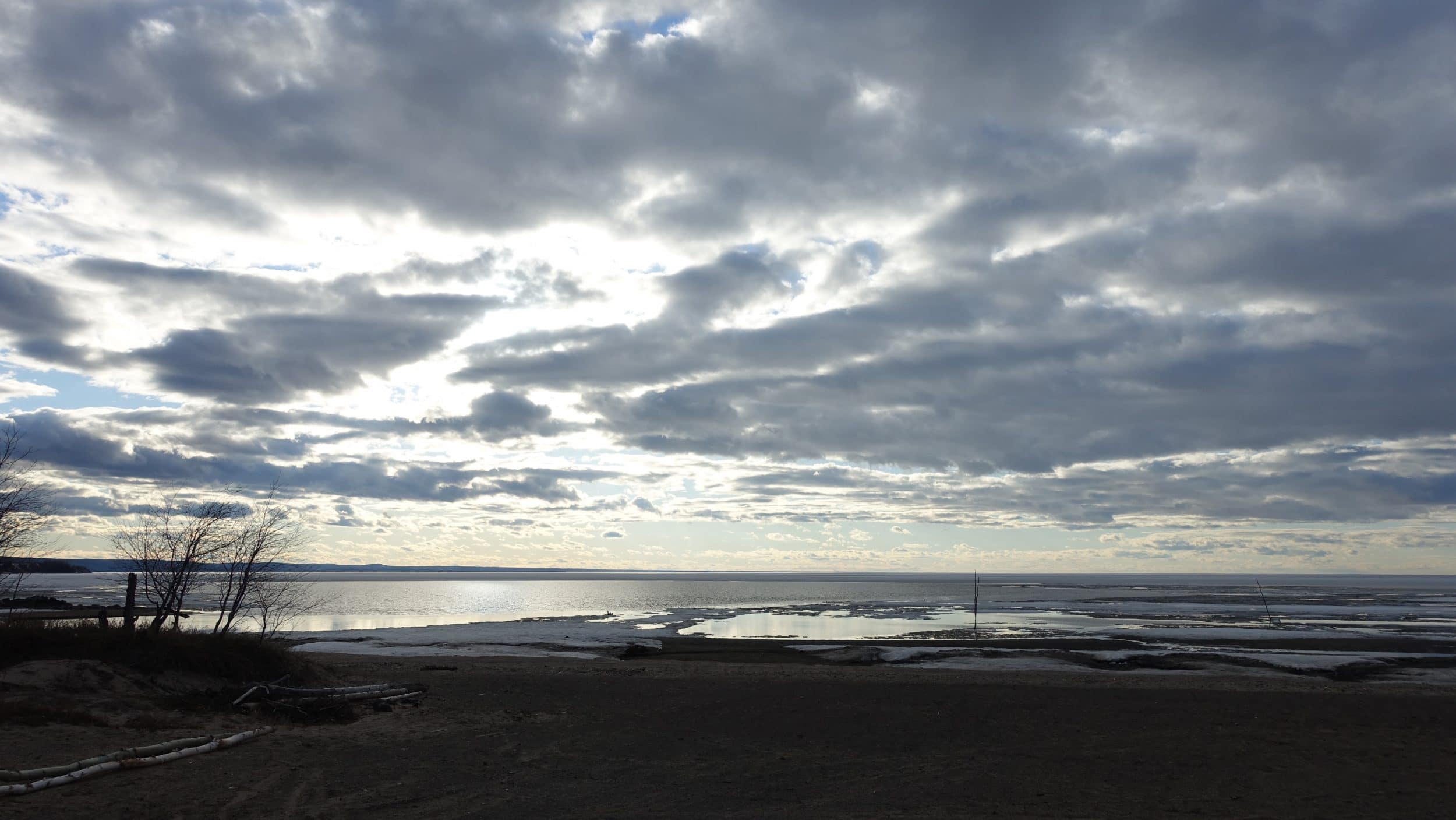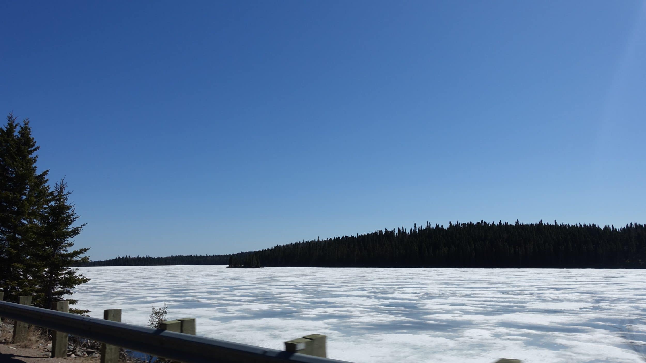 Enquanto o Lago Saint-Jean ainda estava congelado há uma semana, encontramos hoje este enorme lago meio congelado. Há até praias de areia, no verão deve ser muito agradável.
