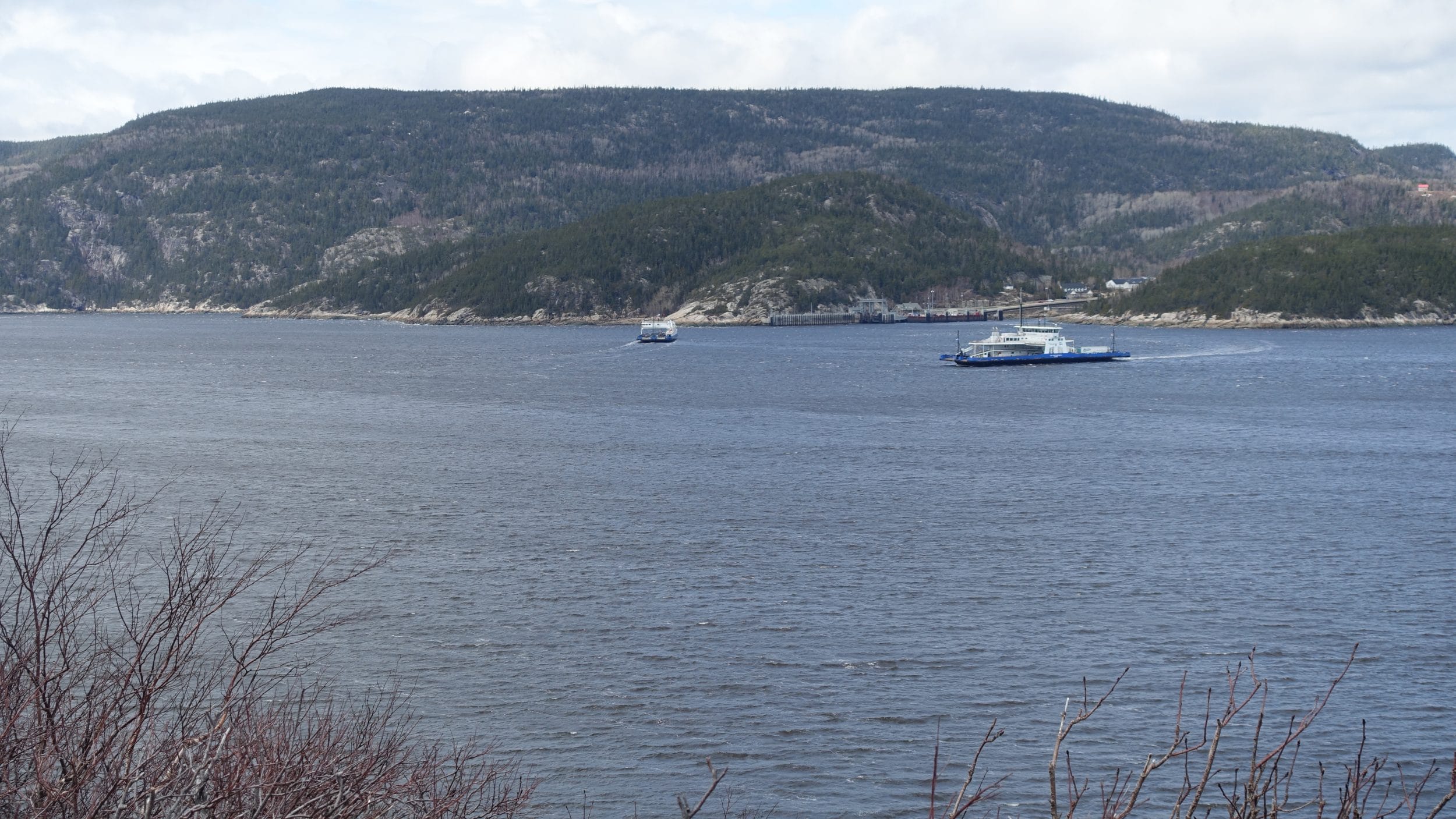 Estamos a chegar ao fim da estrada. Daqui, os ferries partem para Tadoussac, um lugar popular para observar focas e baleias. Os ferries partem a cada 20 minutos e a travessia é grátis. Não o vamos fazer hoje porque as excursões e plataformas de observação estão fechadas até meados de Junho. Voltamos mais tarde.