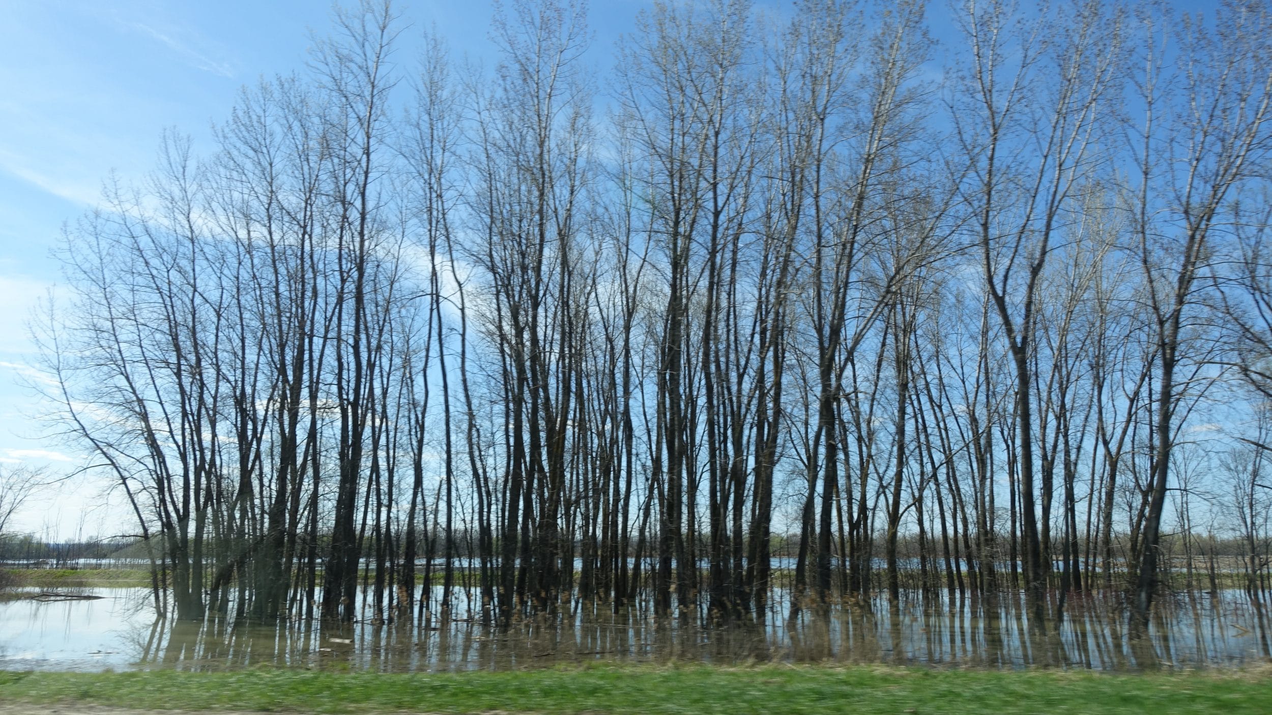 Antes de vir para Montreal, recebemos um e-mail da Airbnb relatando uma inundação em direção ao nordeste da cidade. Felizmente, o nosso airbnb não está preocupado, mas é levando o carro que podemos ver a extensão do fenómeno. A água atinge quase o nível da auto-estrada e milhares de casas e árvores têm os seus pés na água.