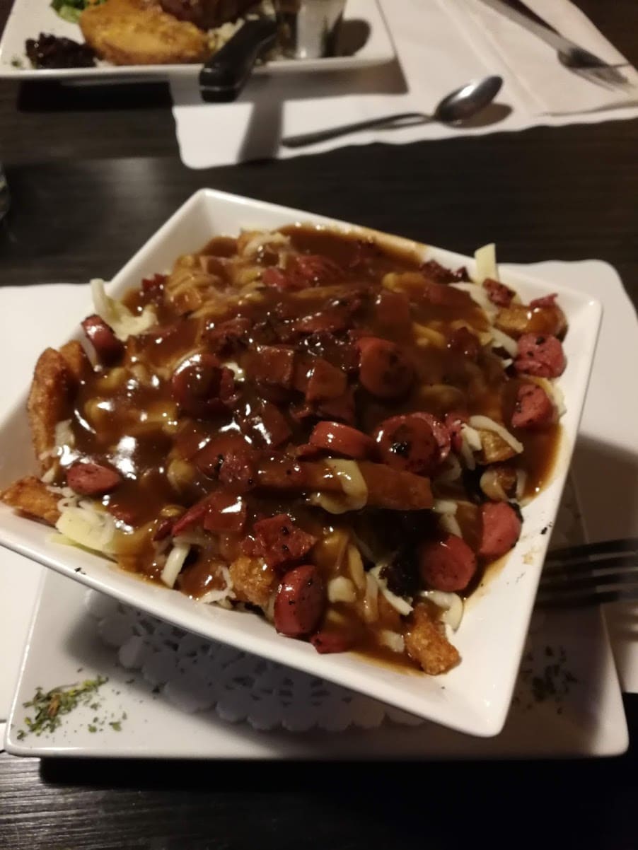 No final do dia, continuamos mais 30 minutos pela rota 155, uma das menores e mais belas estradas do Canadá, até o nosso Motel: Auberge Motel Panorama(Booking link), com vista para outro lago (Lac Bouchette). Temos um jantar no restaurante local na esquina. JB finalmente tenta poutine, a especialidade do Quebec, mas infelizmente, não é nada bom (como o aspecto visual nos permite imaginar).