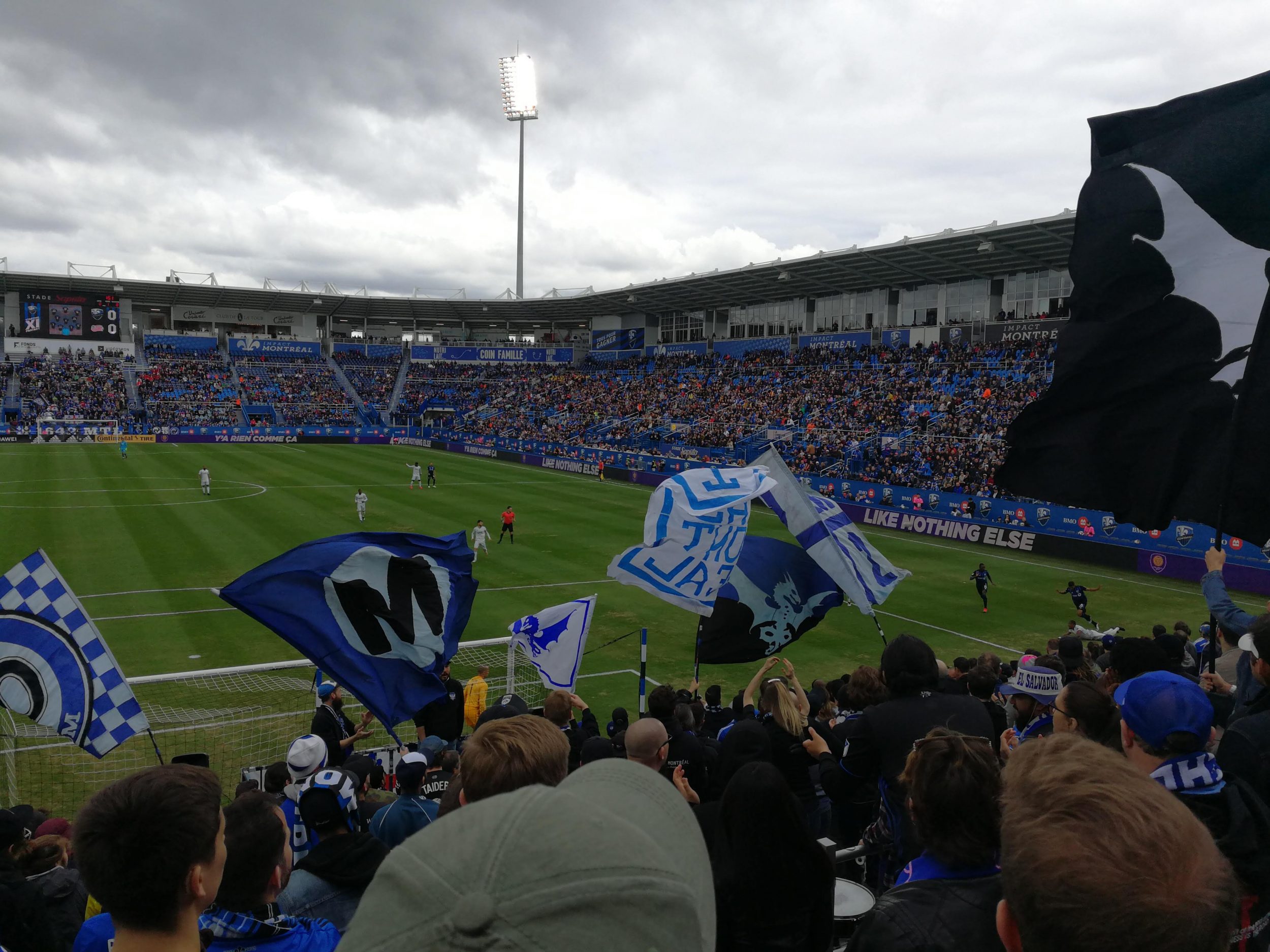 Se o ambiente é bom na bancada, o espectáculo no relvado é menos assim. Falta-lhe velocidade, movimento e precisão técnica. O Impacto Montreal tem a posse da bola, mas permanece estéril