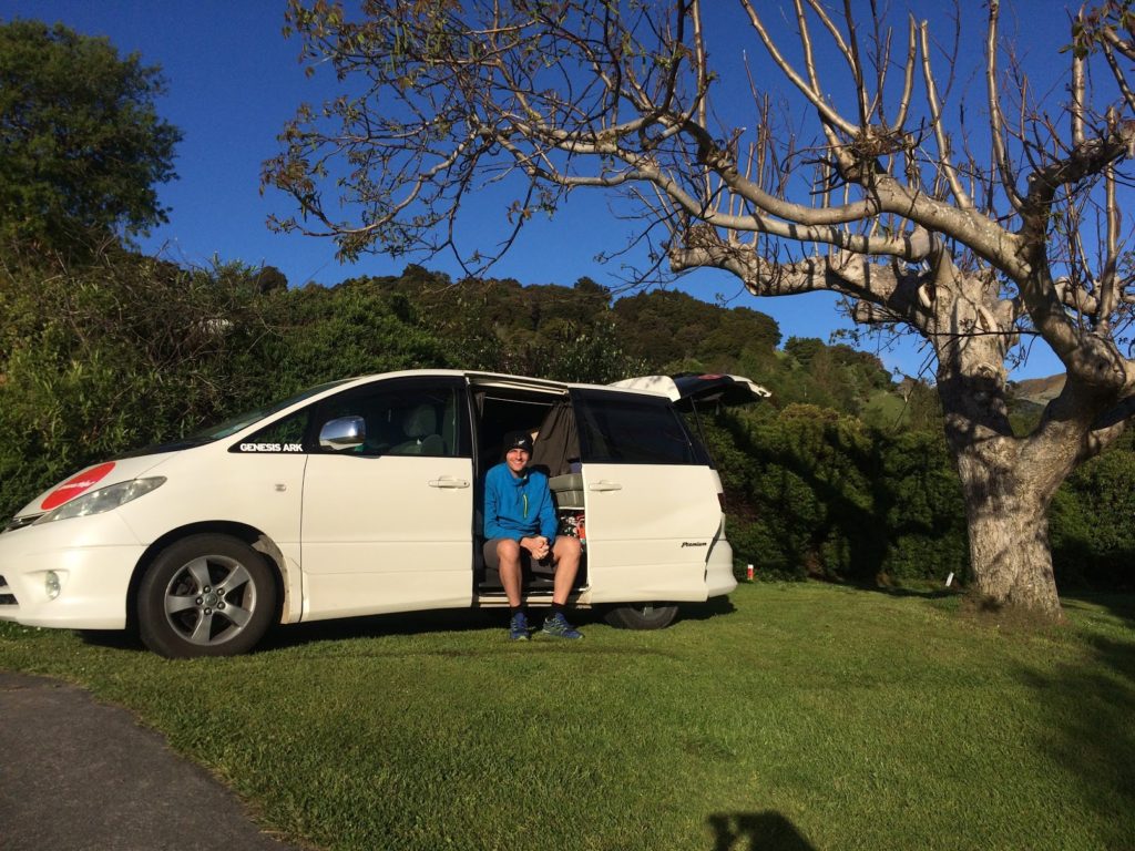 JB tem demasiados problemas para estacionar no topo da colina, mas um neozelandês experiente, observando a cena da sua varanda, diz-nos como proceder. É isso, estamos confortáveis! Com uma bela vista da baía como um bónus