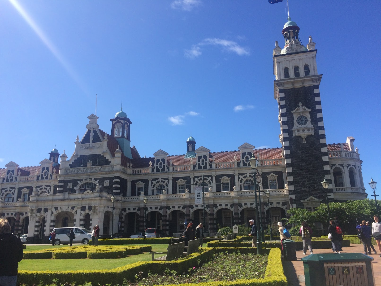dia seguinte, direção Dunedin, onde descobrimos uma cidade super agradável com arquitetura escocesa. O lado limpo e bonito da Disneylândia parece ser a marca registrada da Nova Zelândia, porque em todos os lugares que vamos, encontramos a mesma harmonia arquitetônica, a mesma limpeza.