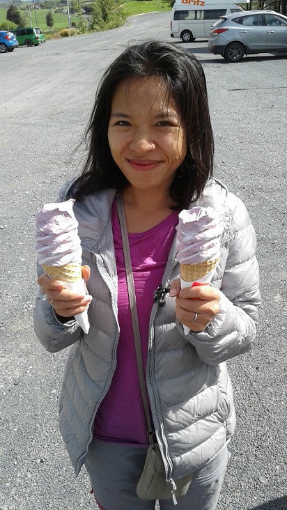 No caminho para Hobbiton, vemos uma placa “Real Fruit Ice Cream” e paramos bruscamente. Eu recomendo o enorme Real Fruit Mixed Berry por NZ$5.5, uma iguaria!