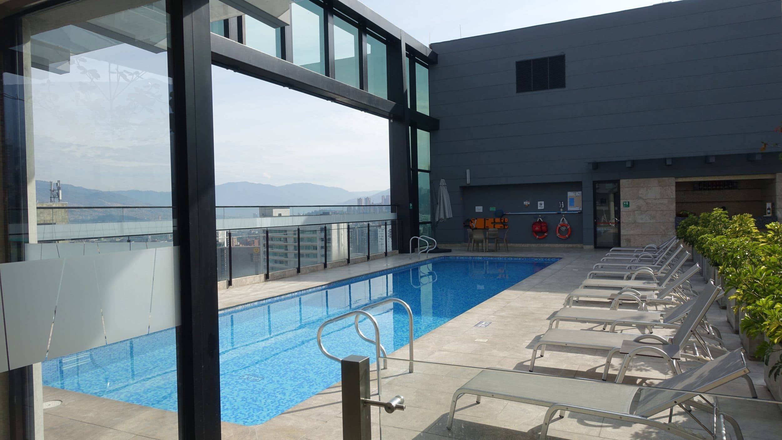 Este hotel (Estelar Square, link Reservas) é realmente legal, ótimo café da manhã, piscina com vista… Internet de alta velocidade. É pena não ficarmos lá durante um mês