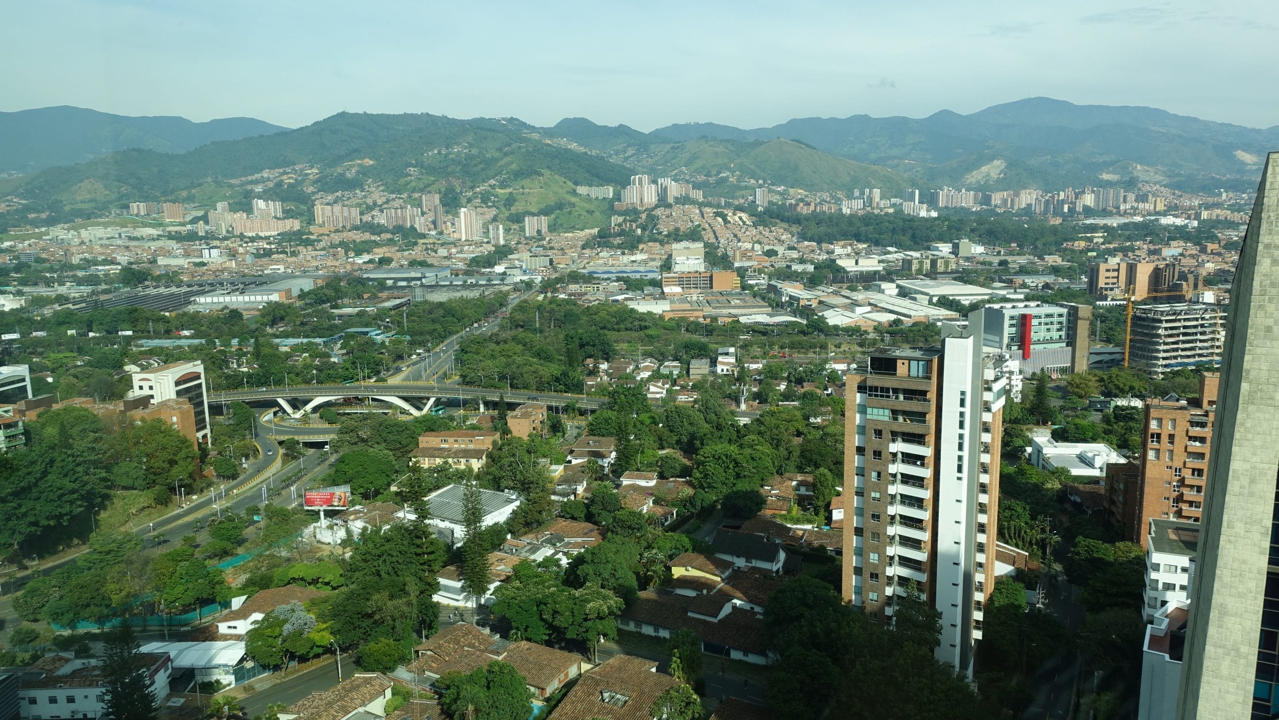 A vista da sala é soberba. Nós sabíamos que estávamos um pouco nas montanhas, mas o efeito “tigela” é ainda mais perceptível. Em comparação com outras cidades em forma de “tigela” no fundo do vale como Kathmandu, La Paz, Medellín parece menos poluída porque o vale é muito maior.