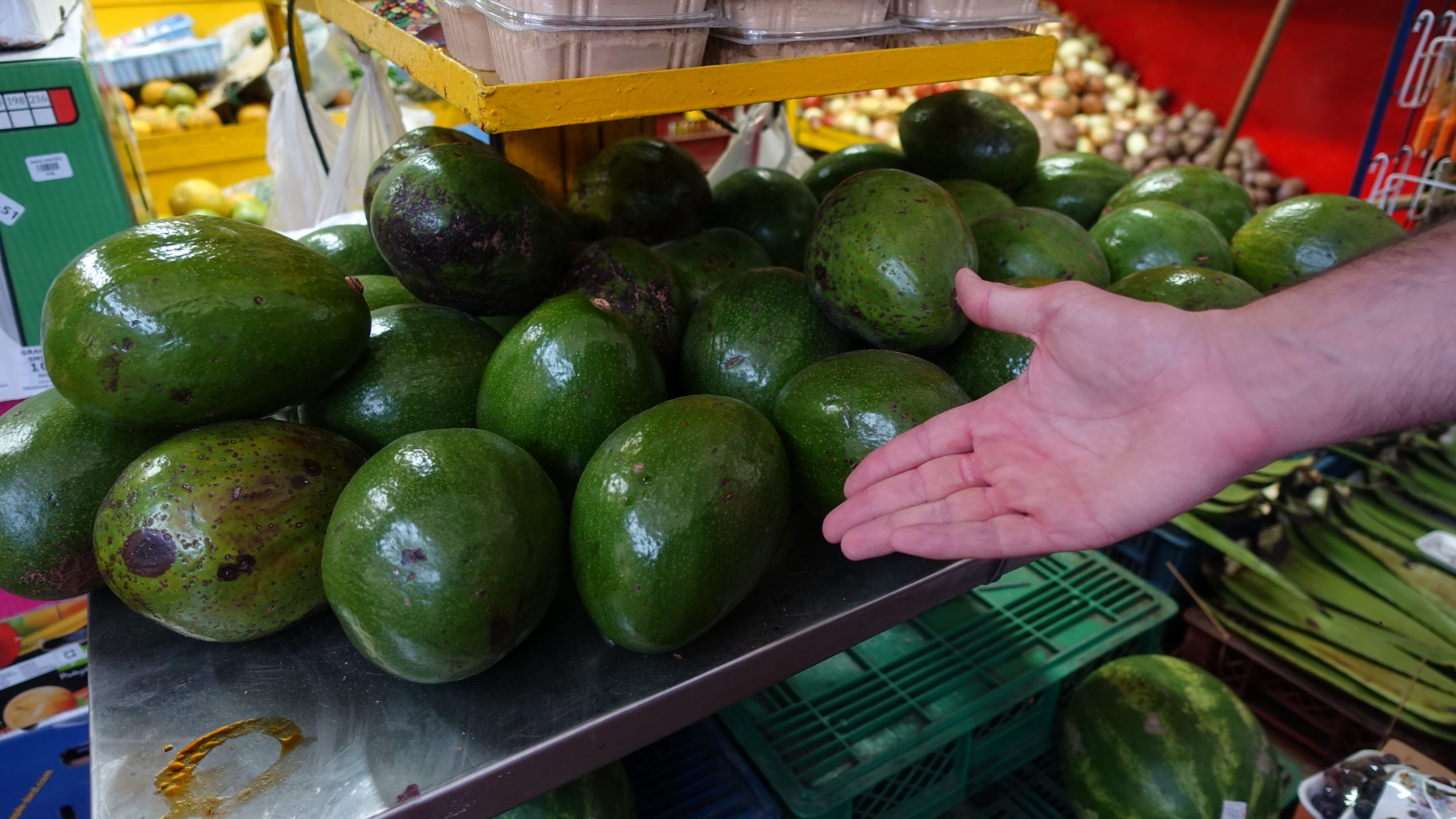 À noite, nós “cozinhamos”. O nosso Airbnb está equipado com uma panela de arroz, é prático. Eu como principalmente fruta e pronto, enquanto JB faz torradas de abacate. A Colômbia é o terceiro maior exportador de abacate. E os abacates aqui são 3 vezes maiores do que o que estamos acostumados a ver (por 0,7 euros cada, cerca de 2500COP).